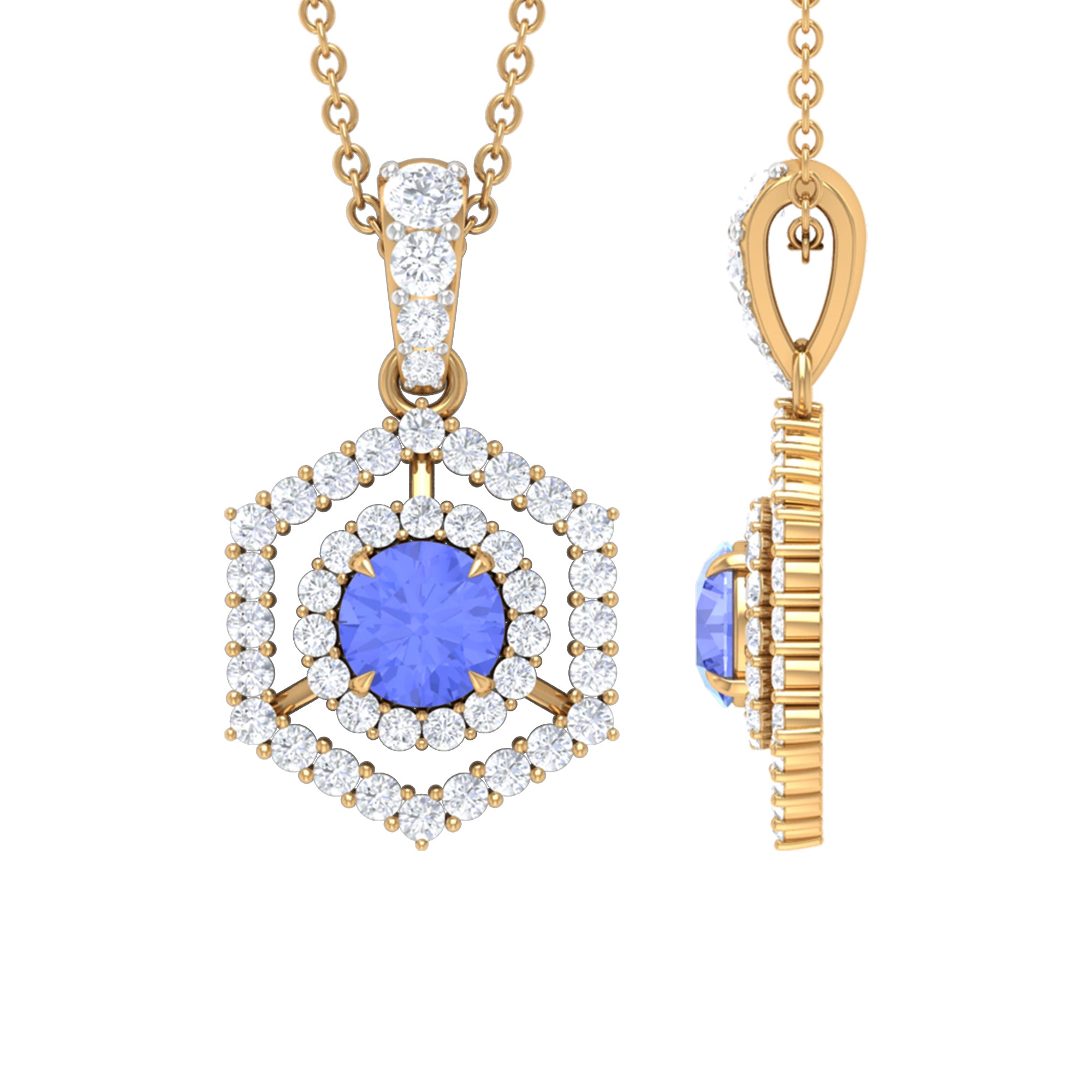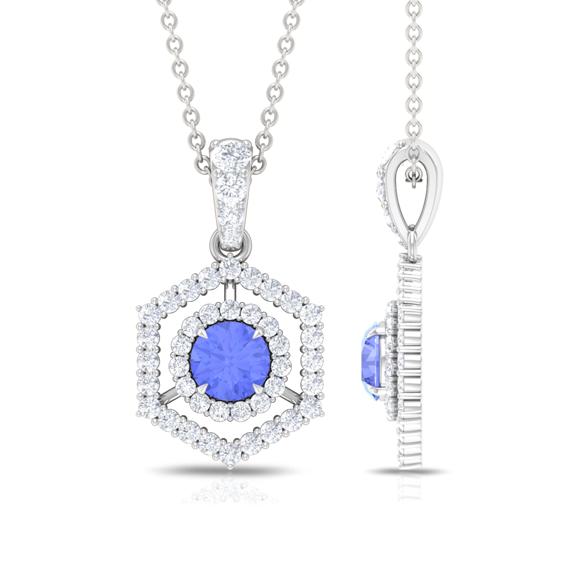 Tanzanite and Diamond Hexagon Pendant Necklace