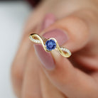 Show your unique style by pairing your attires with a Bypass Ring featuring a Round Shape Tanzanite Solitaire and Round Shape Diamond in a Prong Setting. This Tanzanite Solitaire Ring adds a stylish touch to any occasion, making you stand out elegantly.