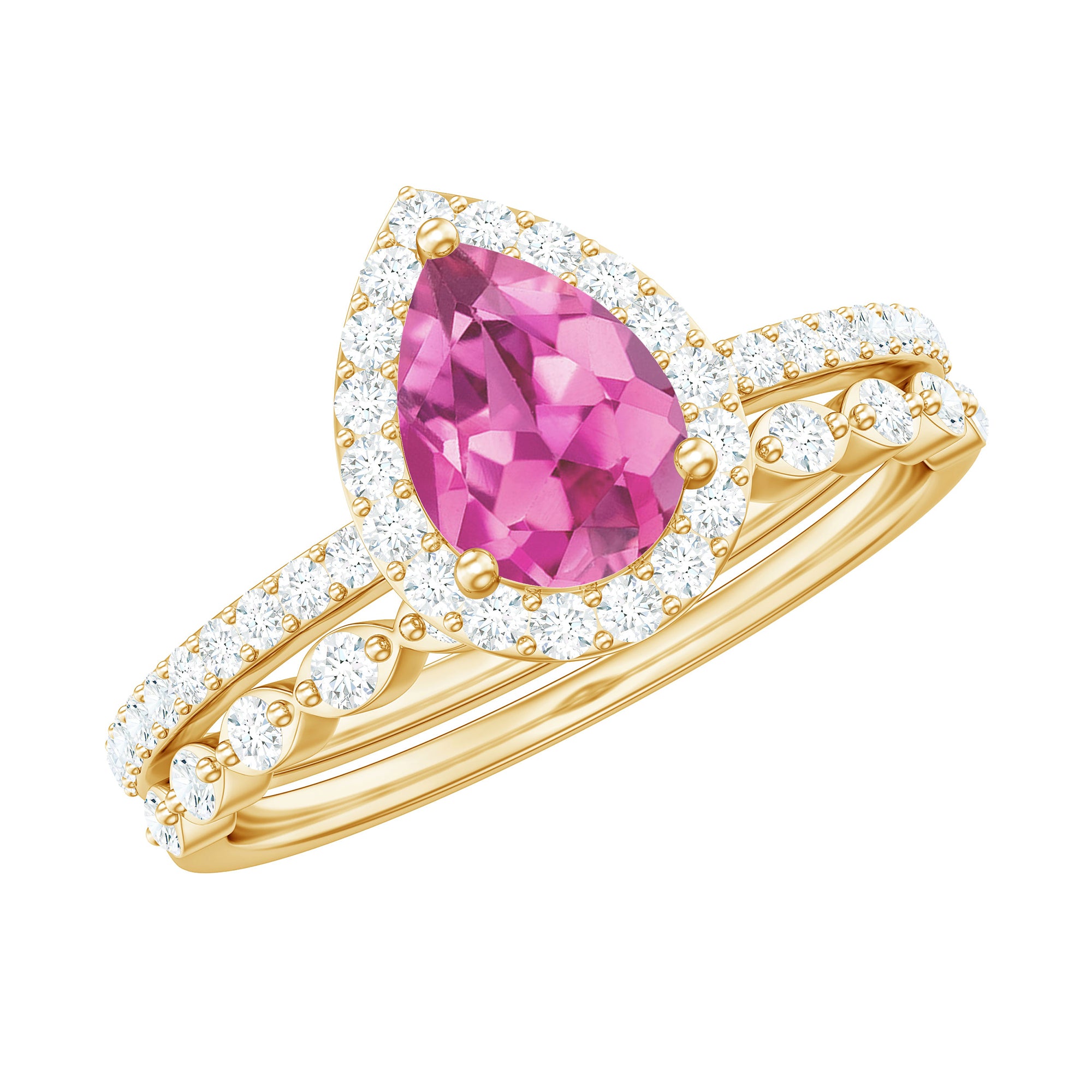 Teardrop Pink tourmaline Bridal Ring Set with Diamond