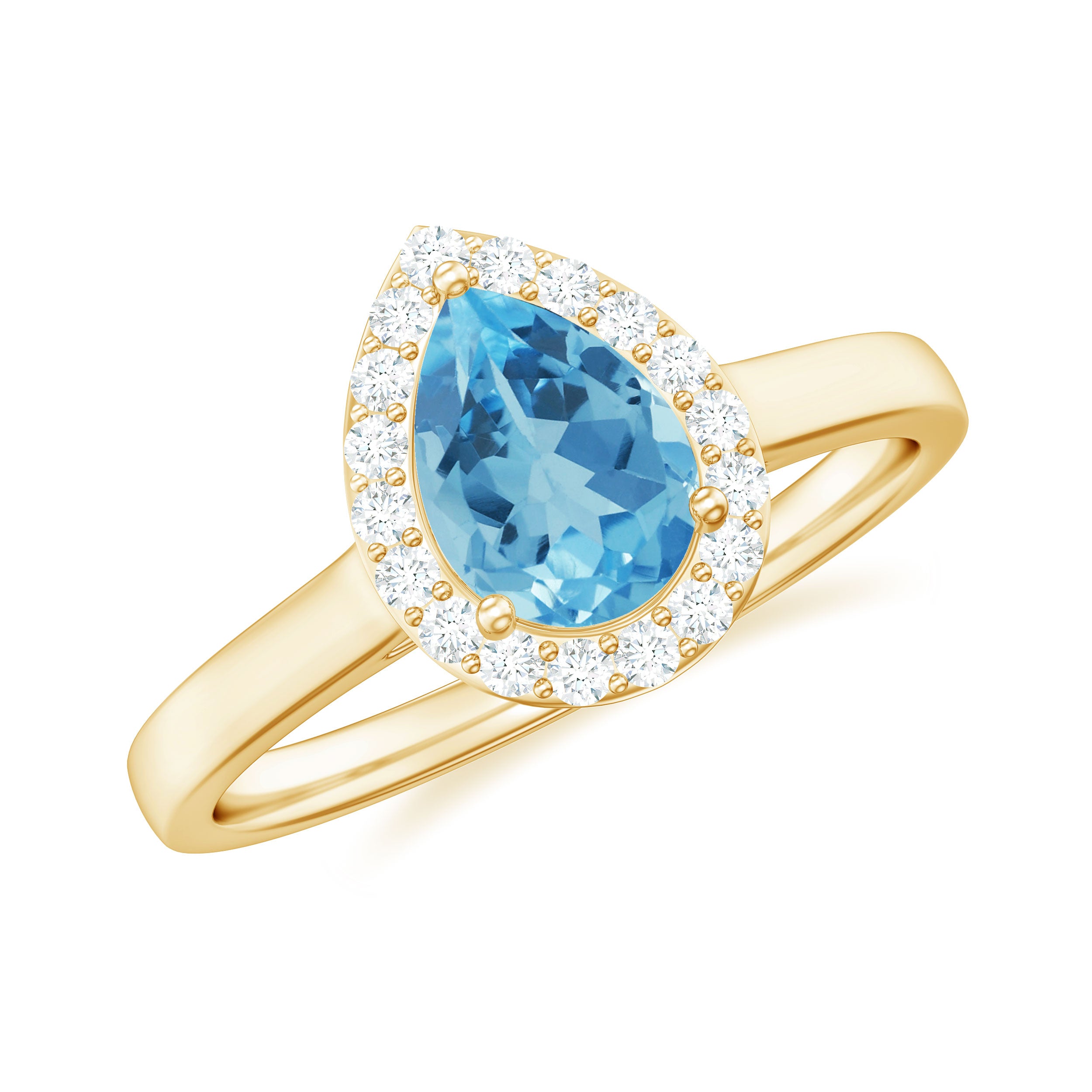 Express your feelings to her with this Swiss Blue Topaz Ring. It features Pear Cut Swiss Blue Topaz with Diamond Accented on Blue Topaz Diamond Ring.