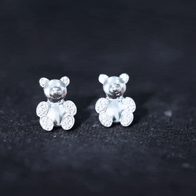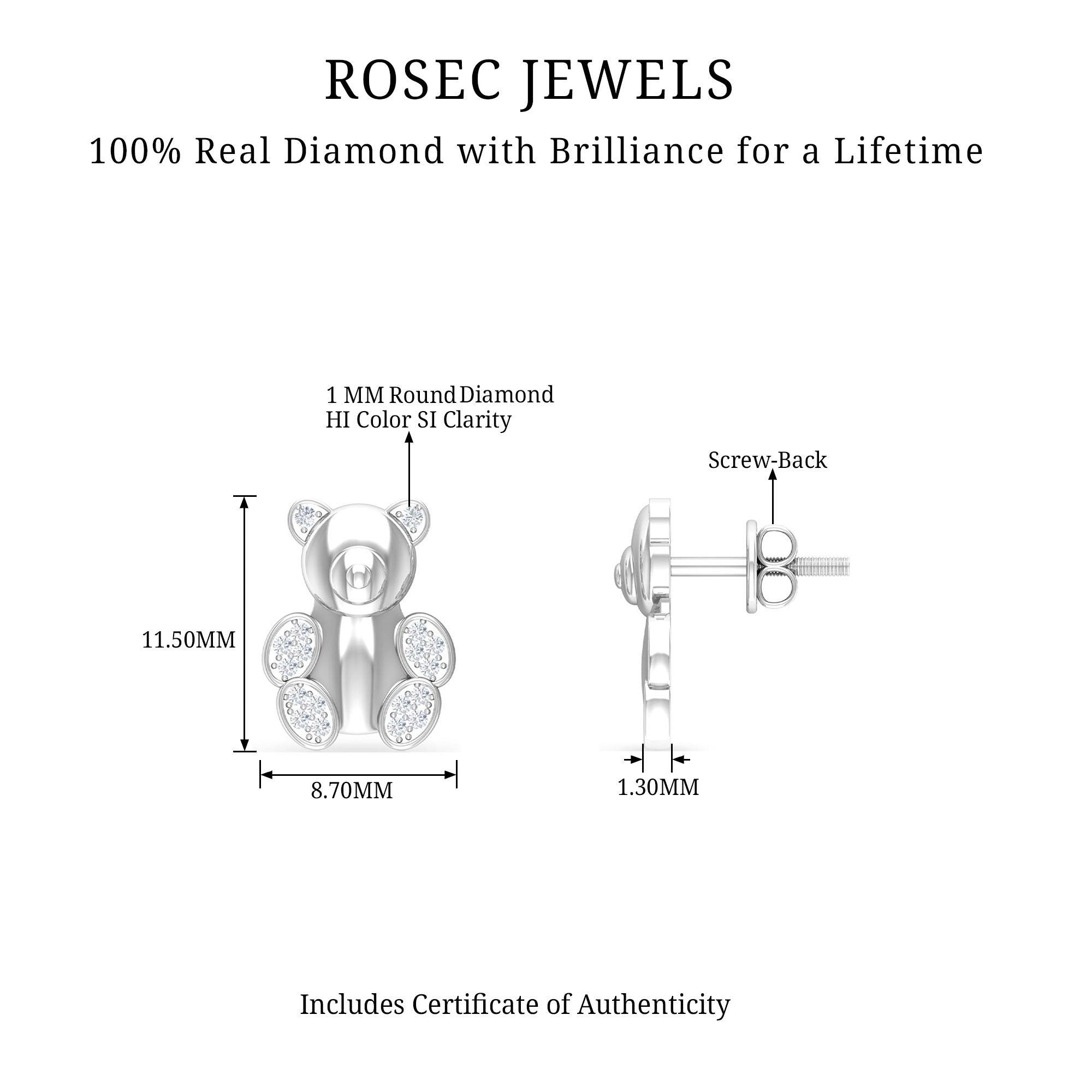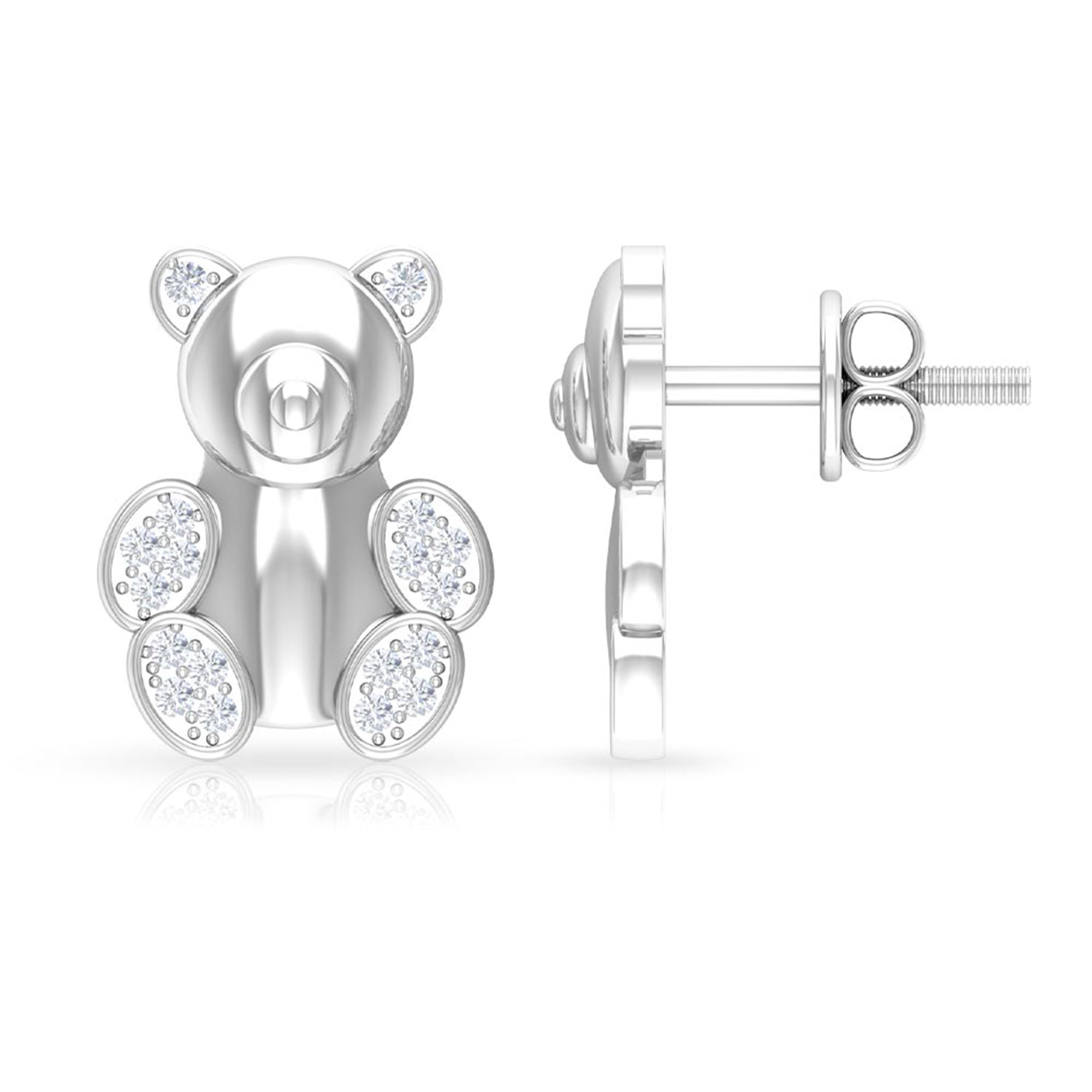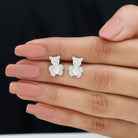 This Cute Teddy Bear Stud Earrings embellished with small Round Shape Diamonds are set in a Prong Setting, crafted in a Solid Gold Metal.