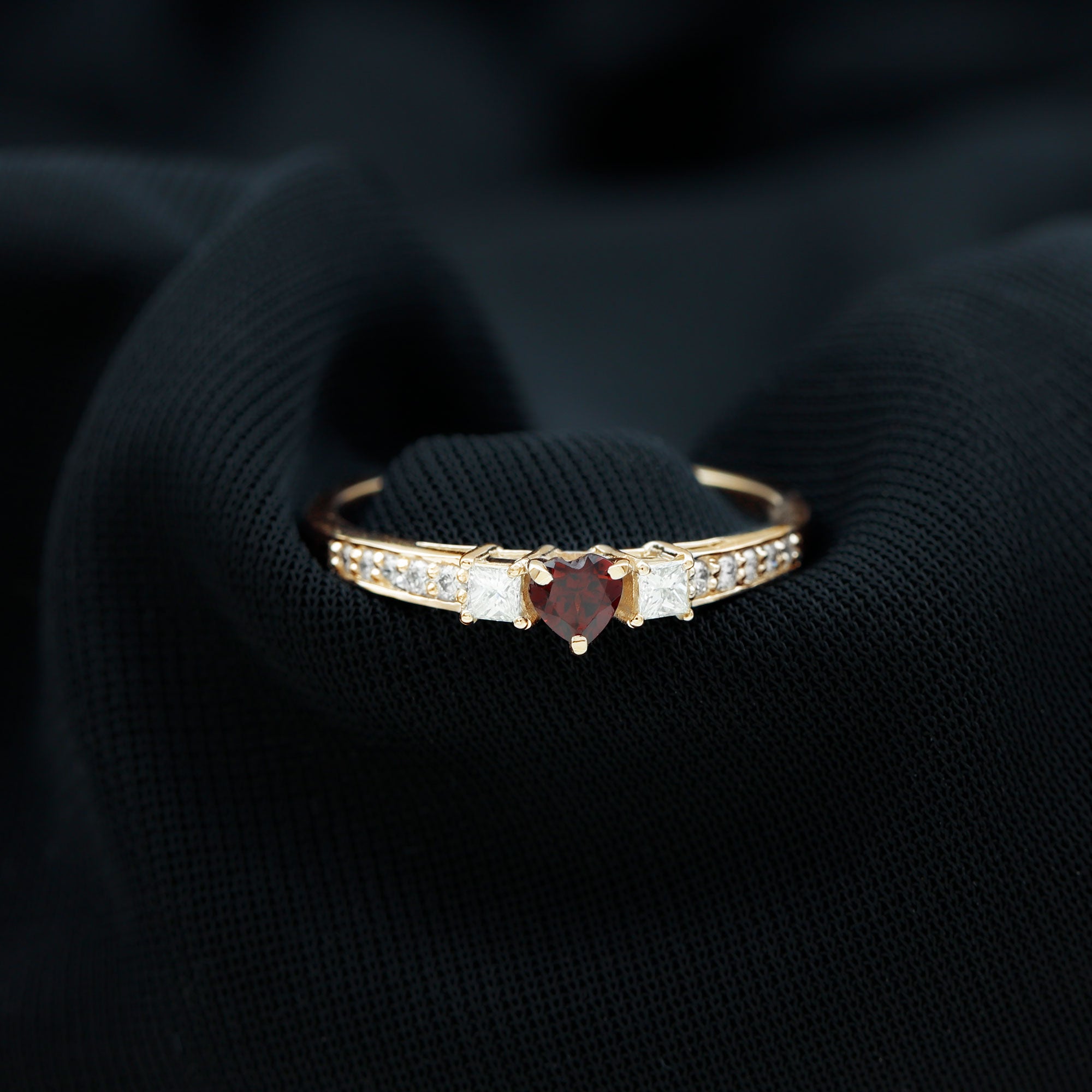 Natural Garnet Heart Shaped Promise Ring with Diamond