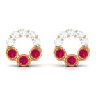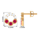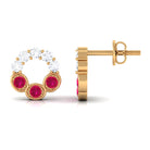 Three Stone Ruby Eternity Stud Earrings with Diamond
