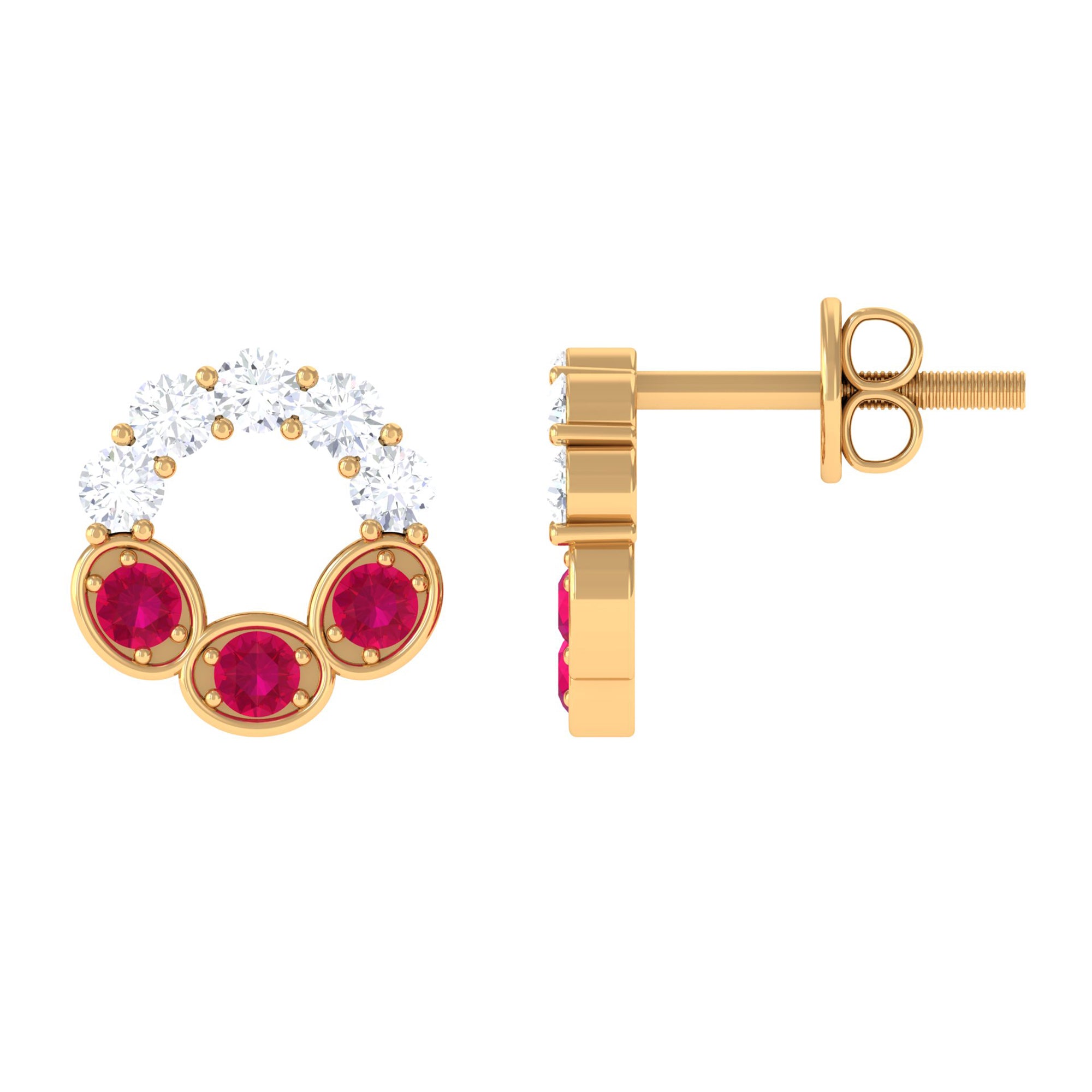 Three Stone Ruby Eternity Stud Earrings with Diamond