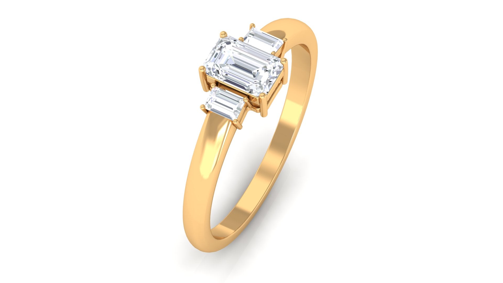 Evoke elegance with the Cubic Zirconia Engagement Ring. This exquisite piece captures the essence of sophistication and luxury, featuring a brilliant 4X6 MM Emerald Cut Zircon center stone that radiates with unmatched brilliance. The addition of Baguette Shape Zircon gemstone on both sides increases the brilliance of this Engagement Ring. The timeless design and impeccable craftsmanship make it a perfect symbol of enduring love and commitment.