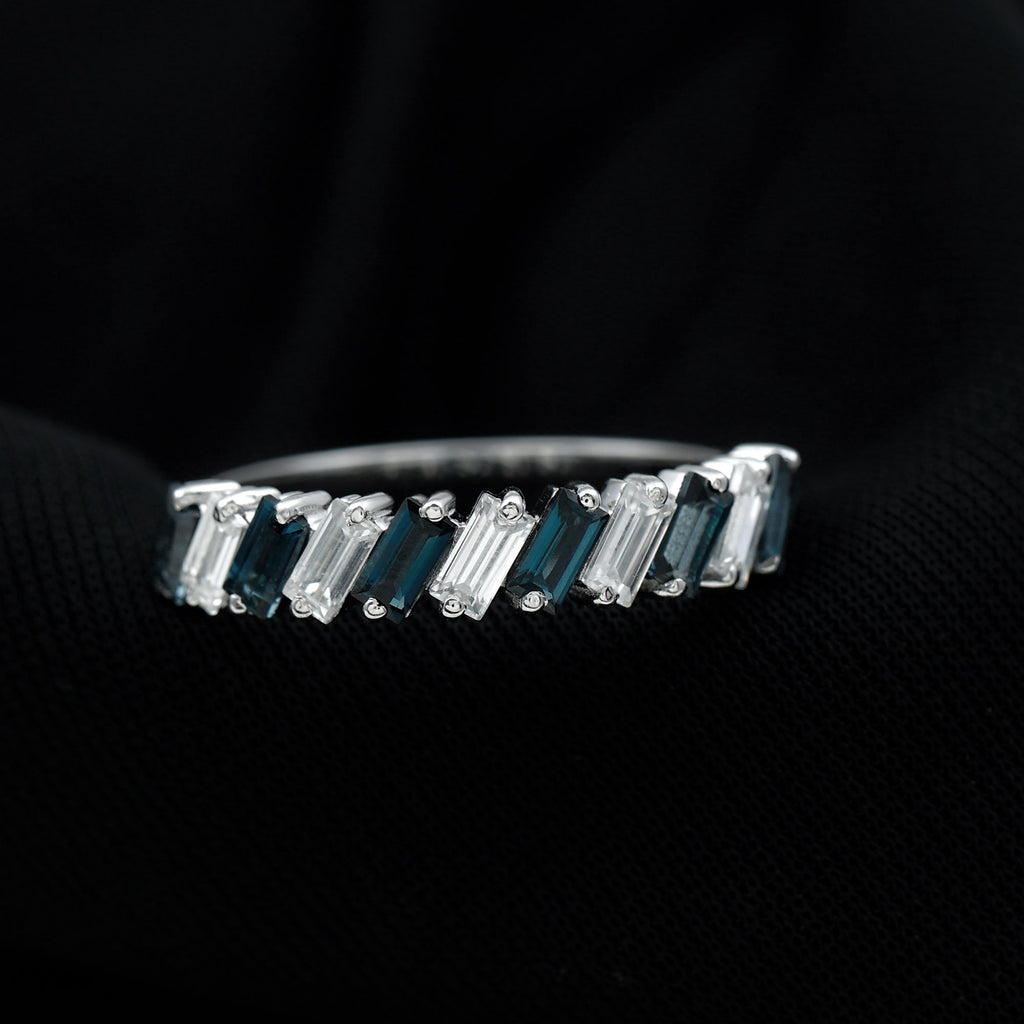 London Blue Topaz and Moissanite Baguette Eternity Ring