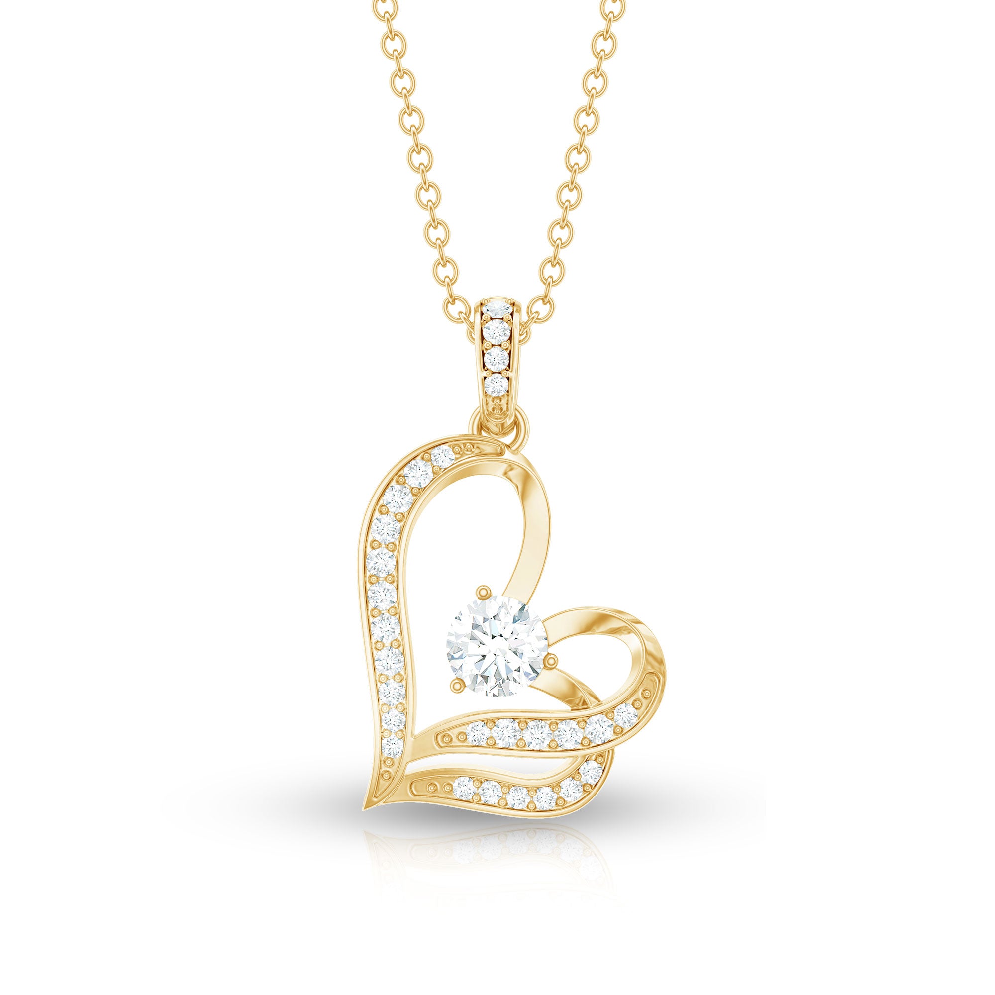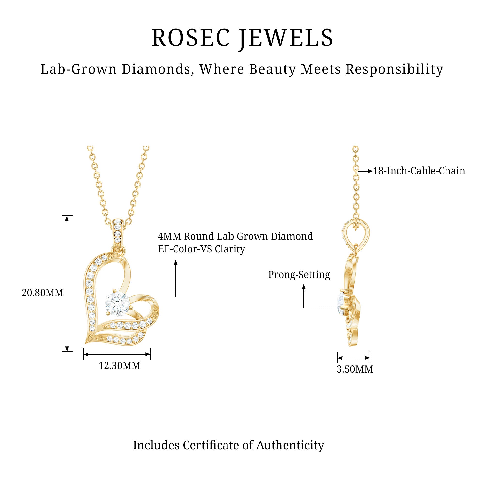 Surprise your loved one with this Heart Necklace featuring Round Shape Diamond gemstones set in a Prong Setting. The subtly tilted heart design of this Lab Grown Diamond Necklace adds a touch of uniqueness and the accent bail complements the look with more shine. Crafted with EF-VS quality diamonds, this Minimal Necklace exudes sophistication and charm. This delicate piece seamlessly blends modern elegance with timeless romance. Upgrade your style with this ethically sourced, exquisite accessory from Rosec Jewels, where craftsmanship meets compassion.