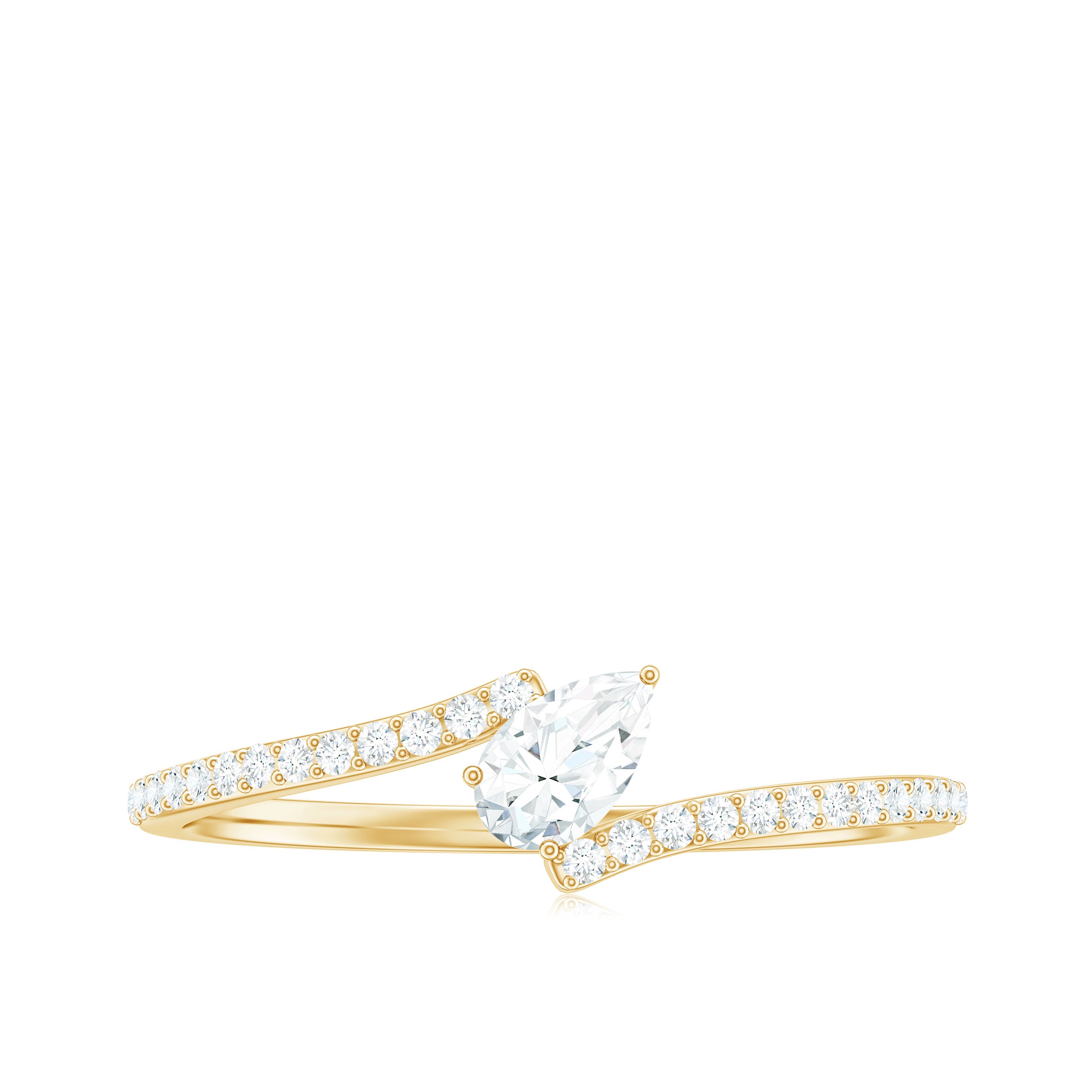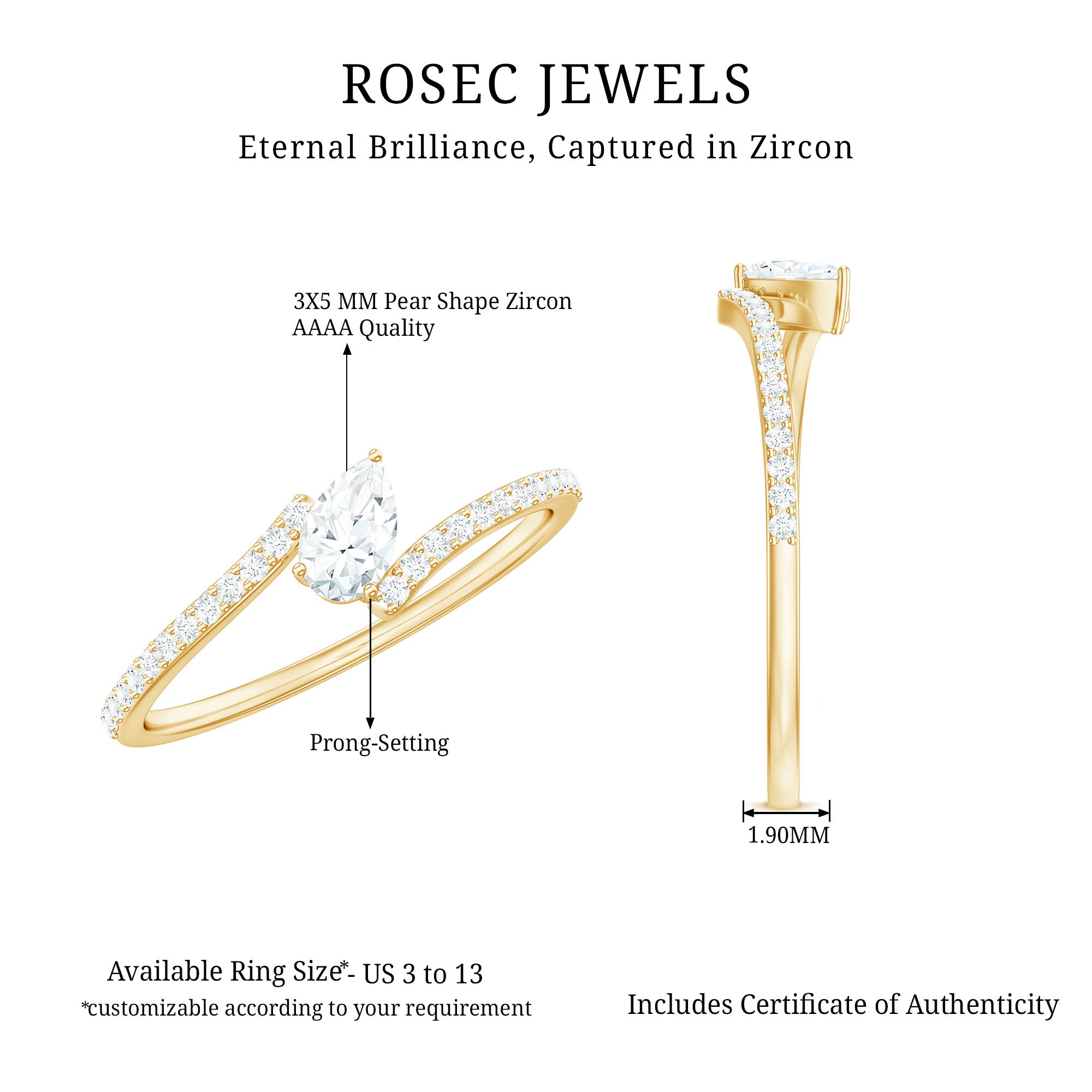 Tilted Pear Shape Simulated Diamond Bypass Promise Ring in Gold