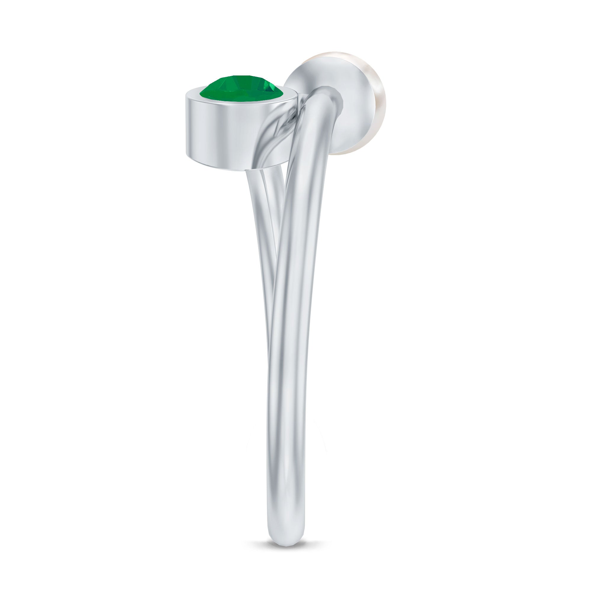 Toi et Moi Emerald and Freshwater Pearl Ring in Gold