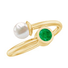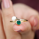 Toi et Moi Emerald and Freshwater Pearl Ring in Gold