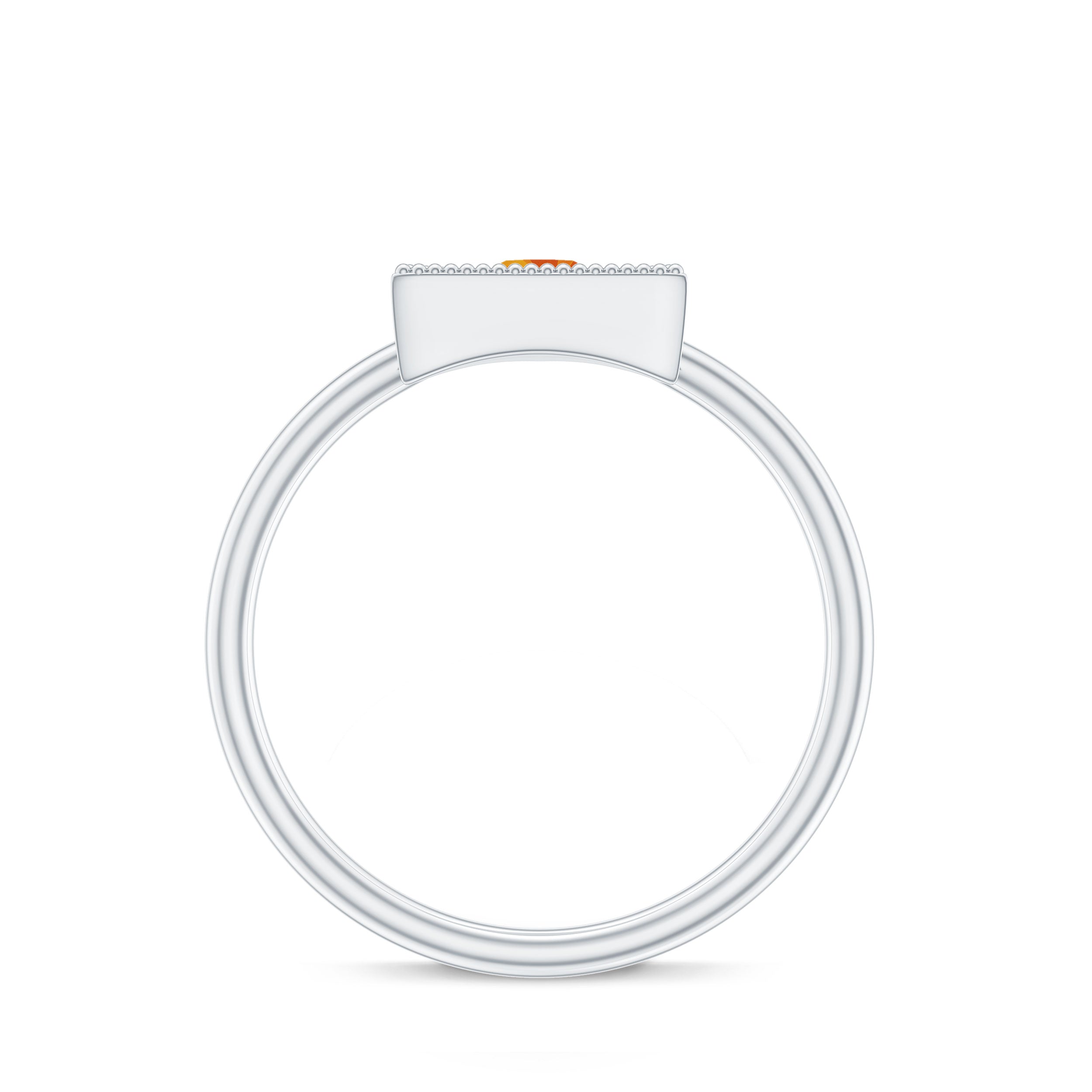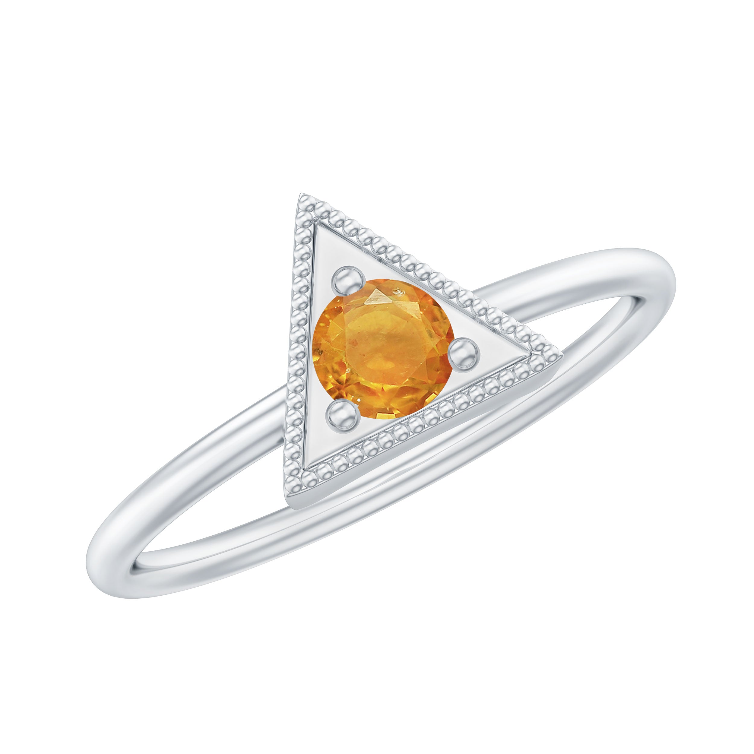 Triangle Shape Ring for Women with Orange Sapphire and Milgrain Detailing