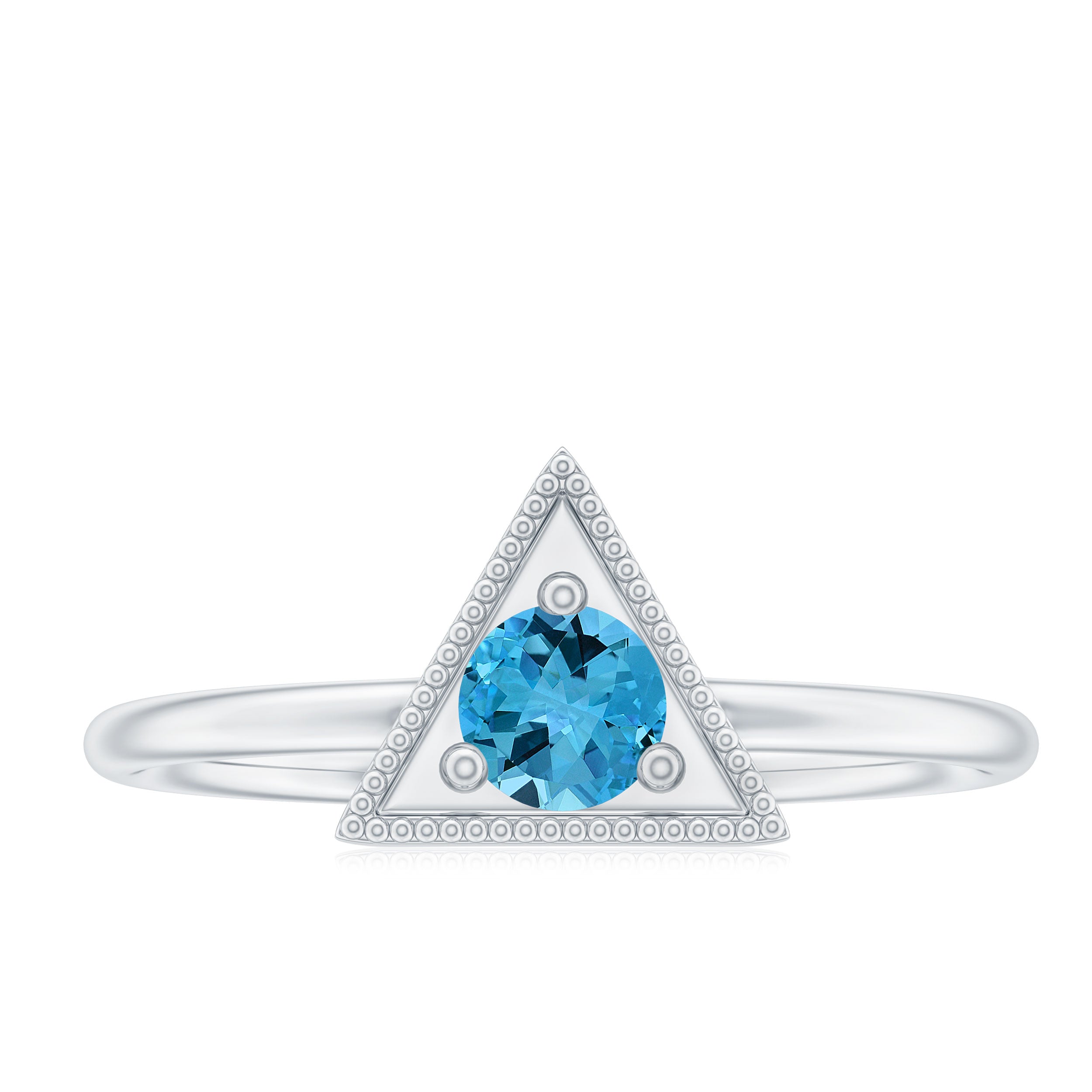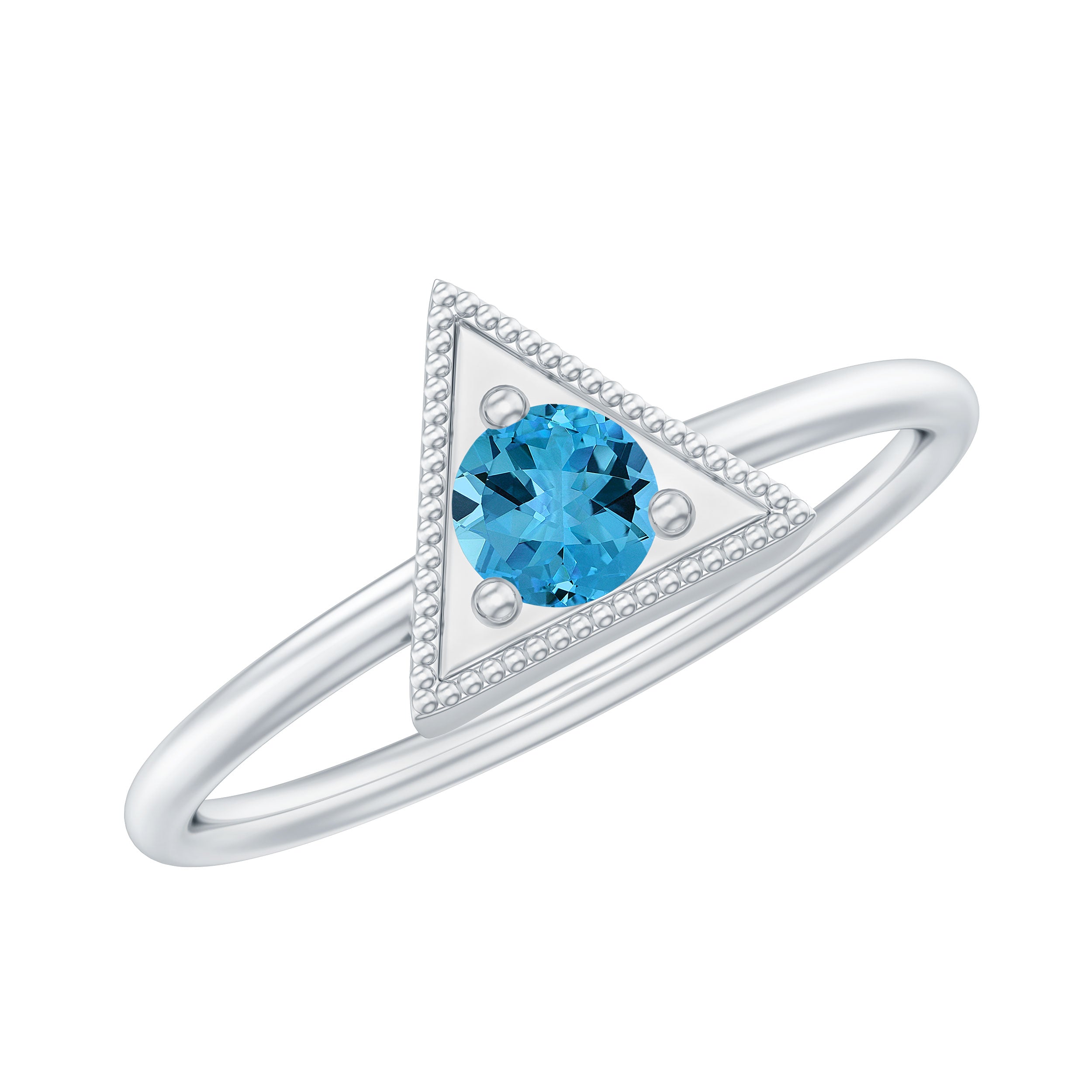 Triangle Shape Ring for Women with Swiss Blue Topaz and Milgrain Detailing