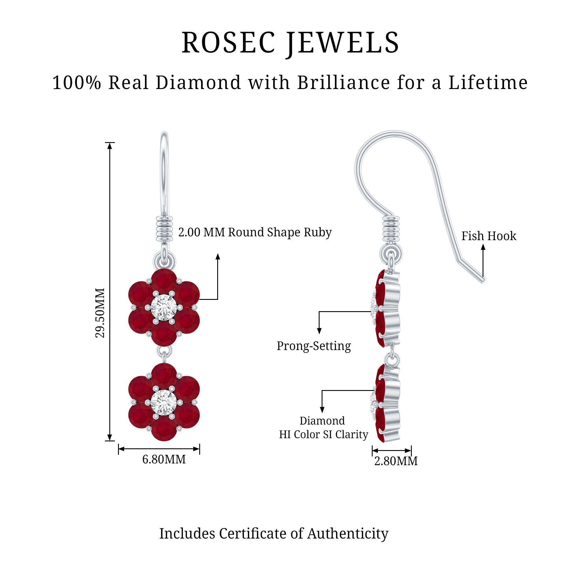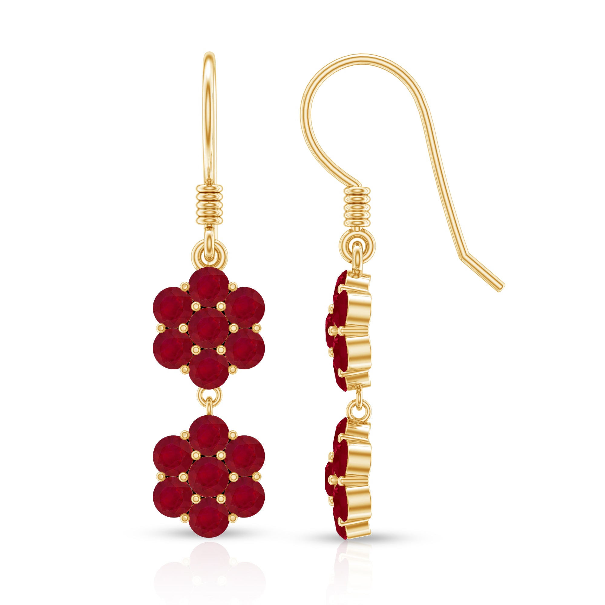 Twin Flower Dangle Earrings with Ruby and Moissanite