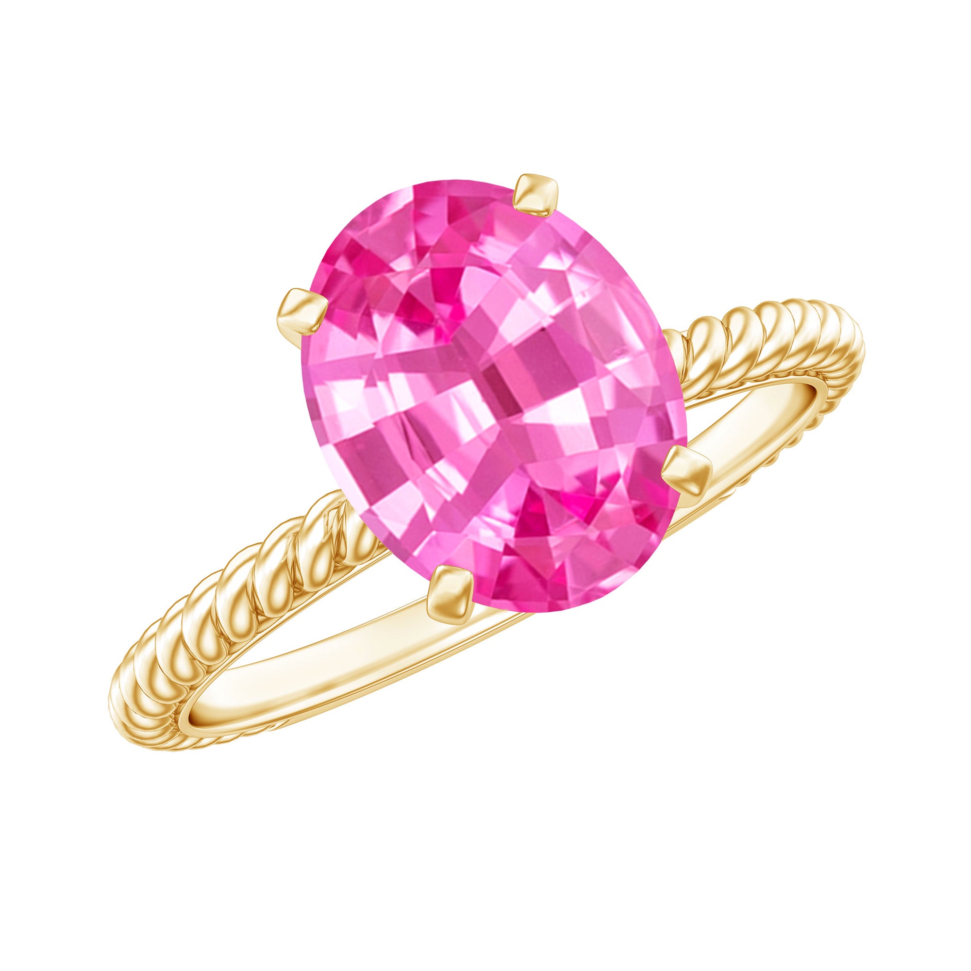 Twisted Rope Created Pink Sapphire Solitaire Ring with Surprise Diamond