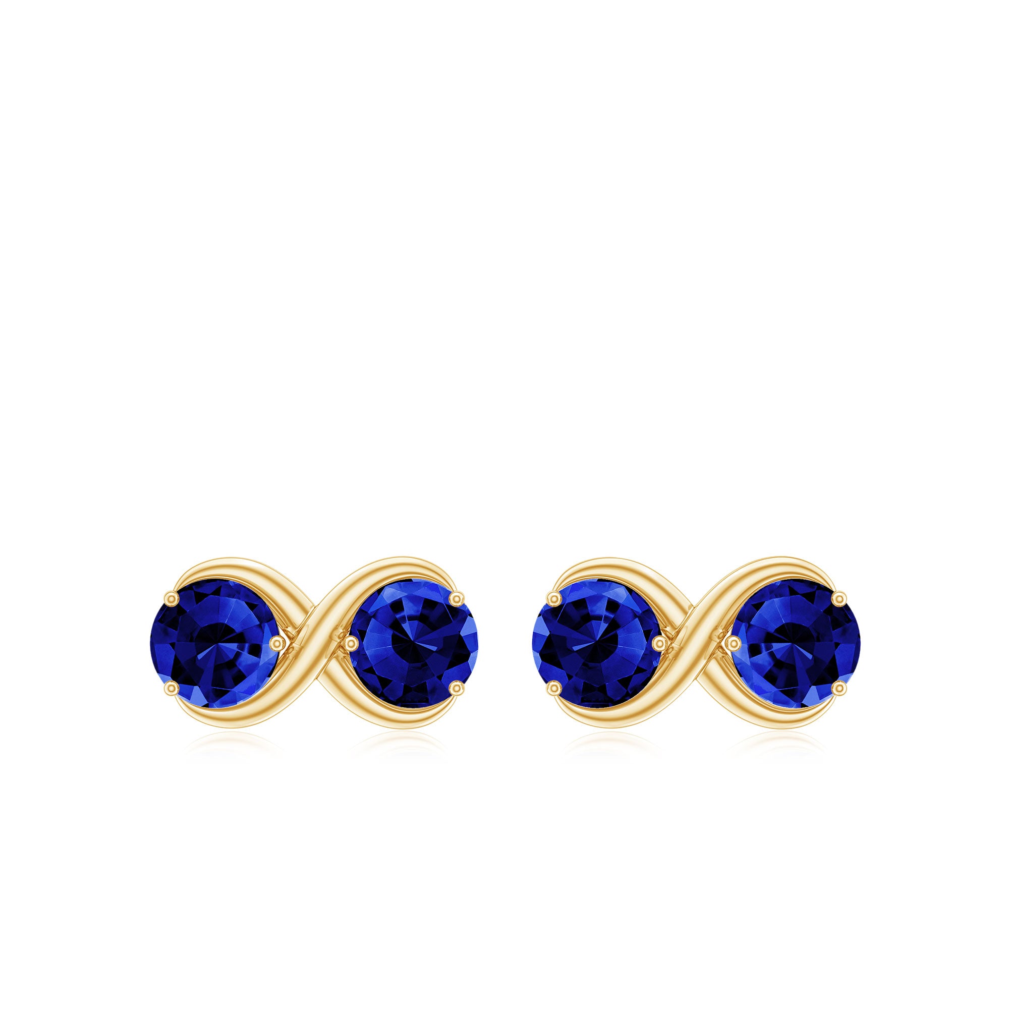 Two Stone Infinity Stud Earrings with Created Blue Sapphire