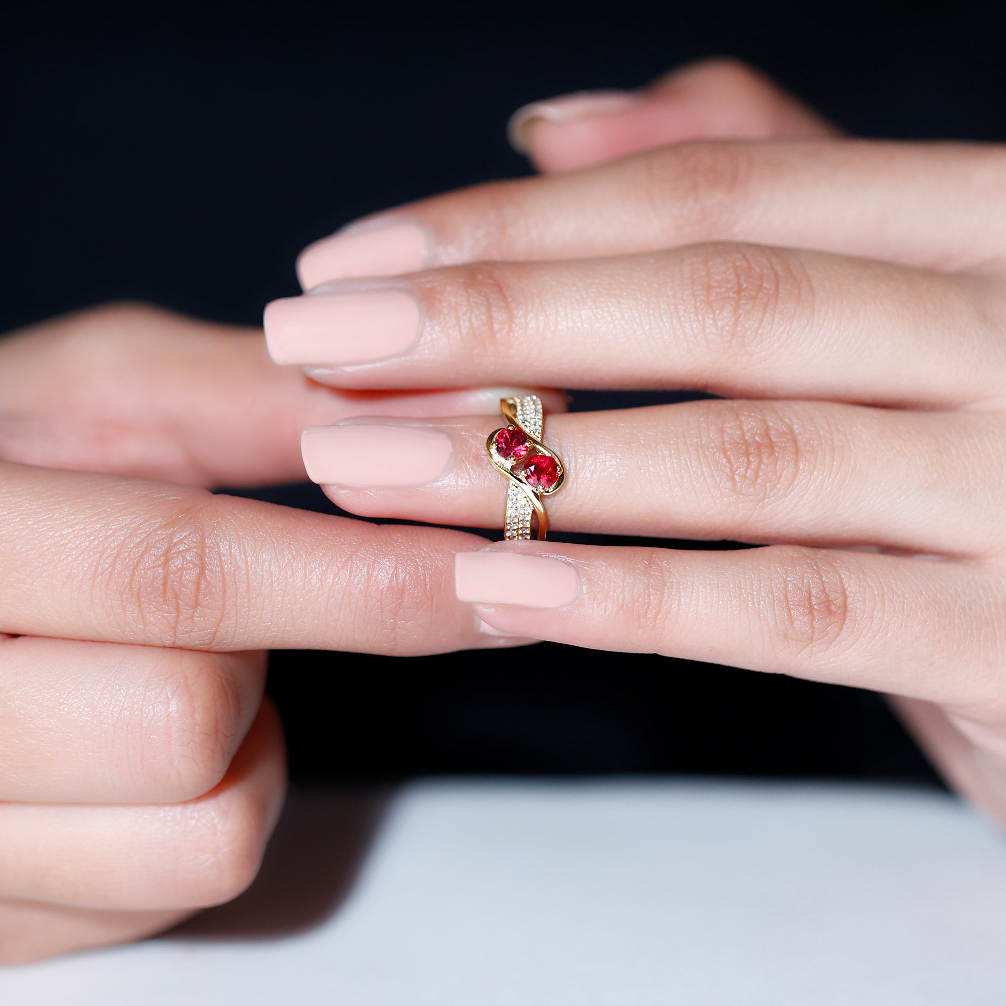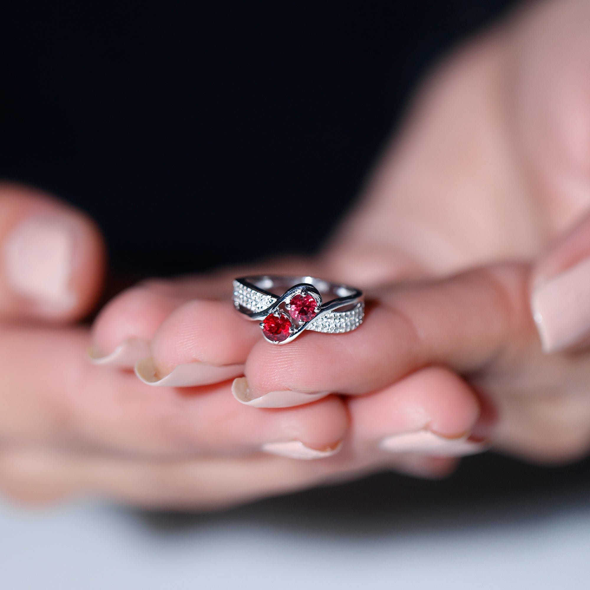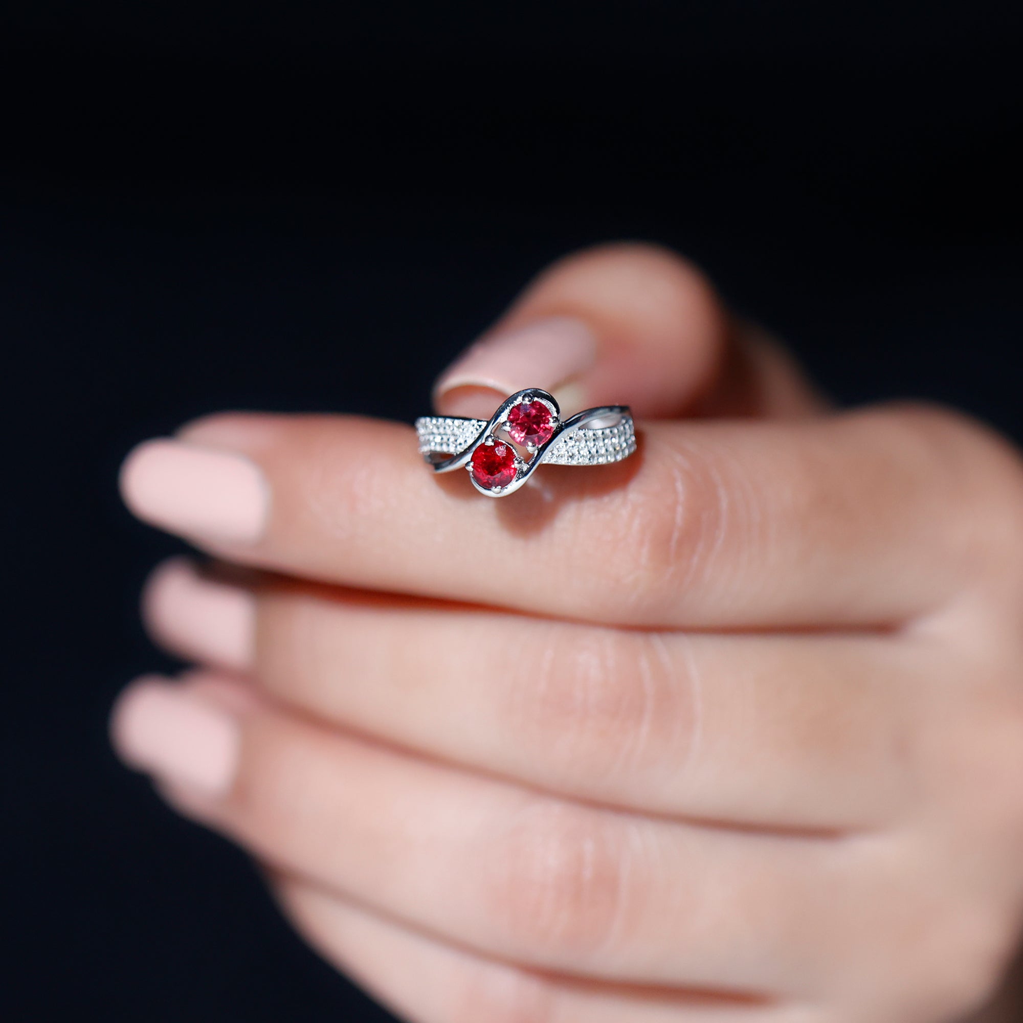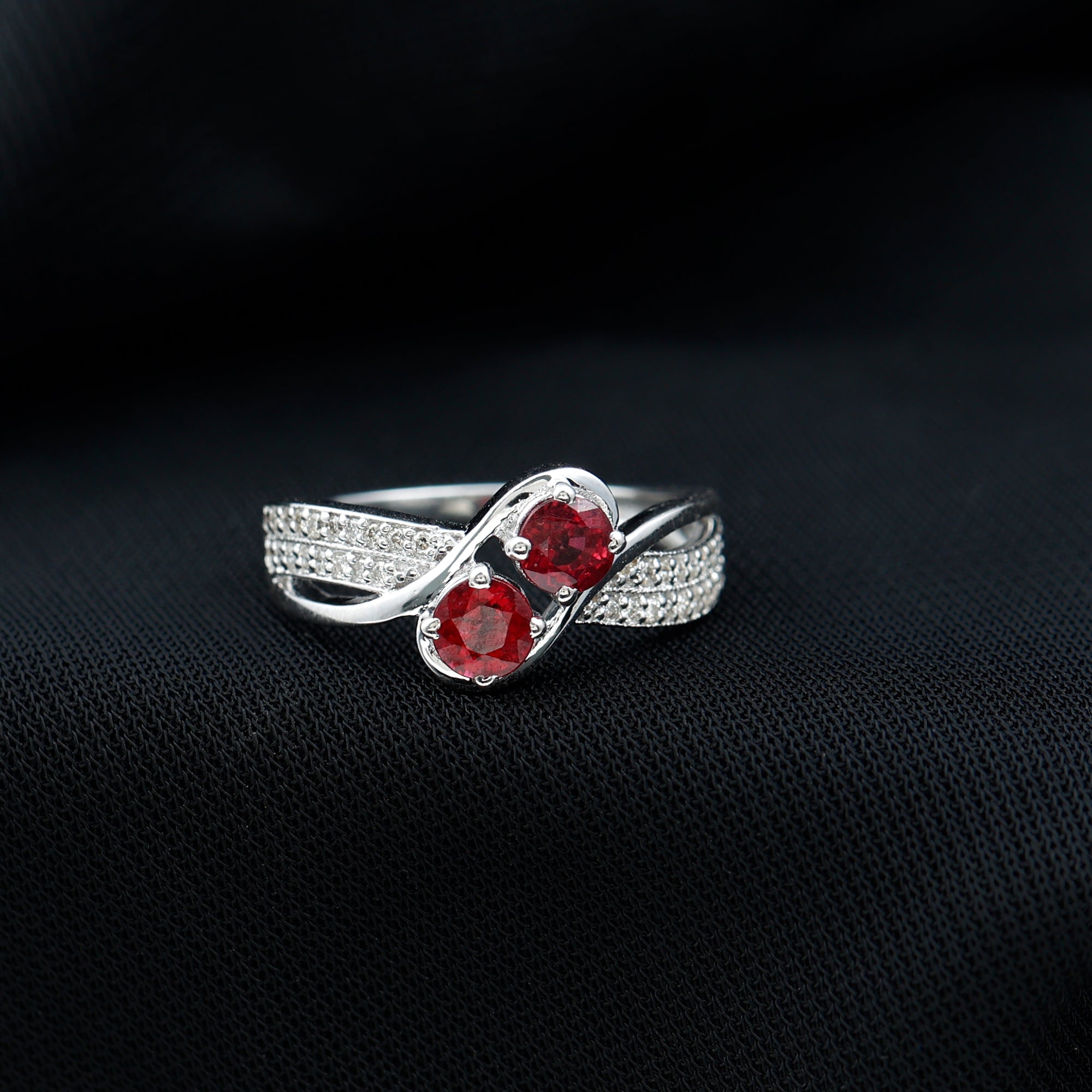 Two Stone Ruby Bypass Engagement Ring with Diamond