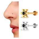 Elevate your fashion game with the addition of this Nose Ring Stud, which is designed to instantly add style to any outfit. The snowflake design features a dainty yet dazzling Round Cut Black Diamond at its center, and is meticulously crafted with Gold Metal.