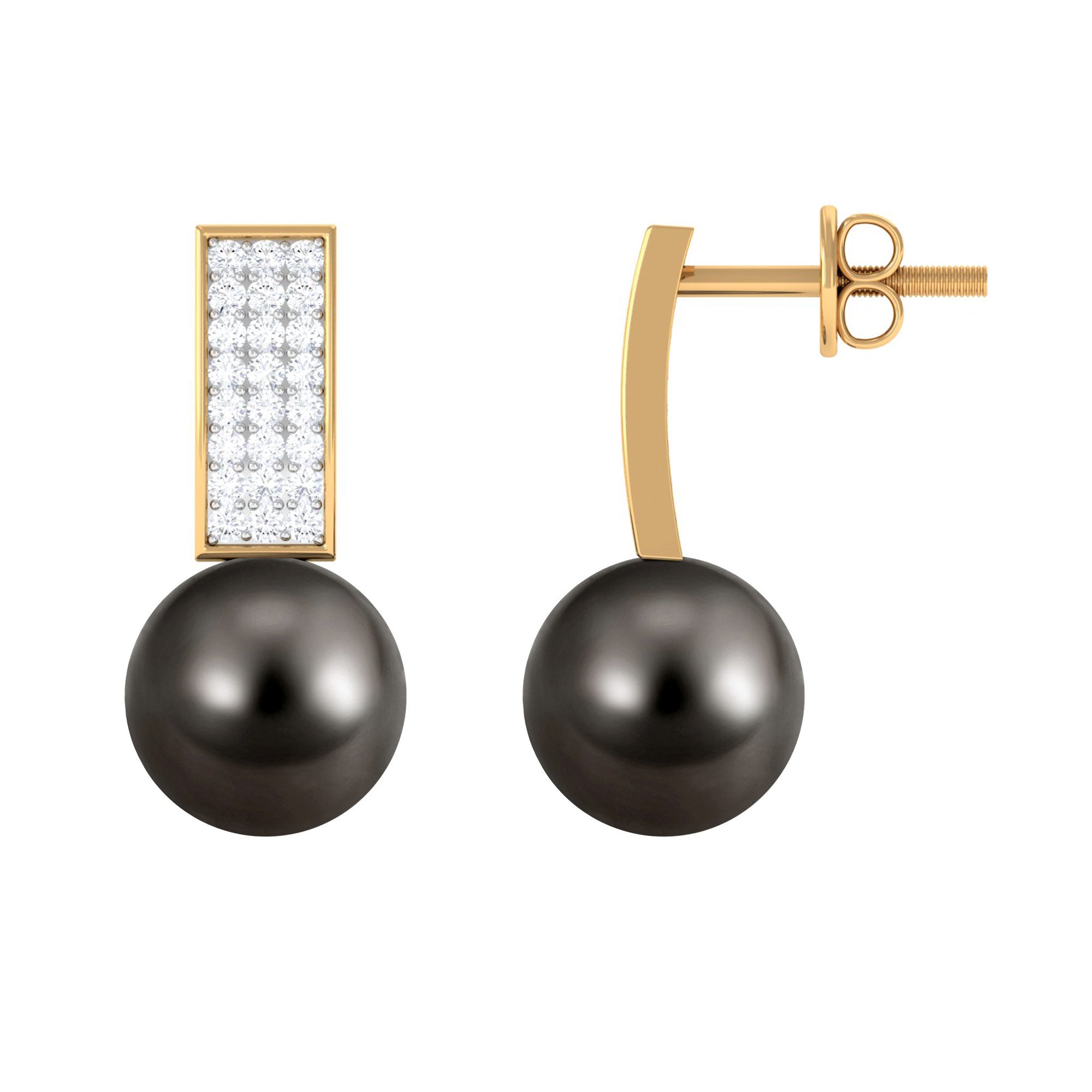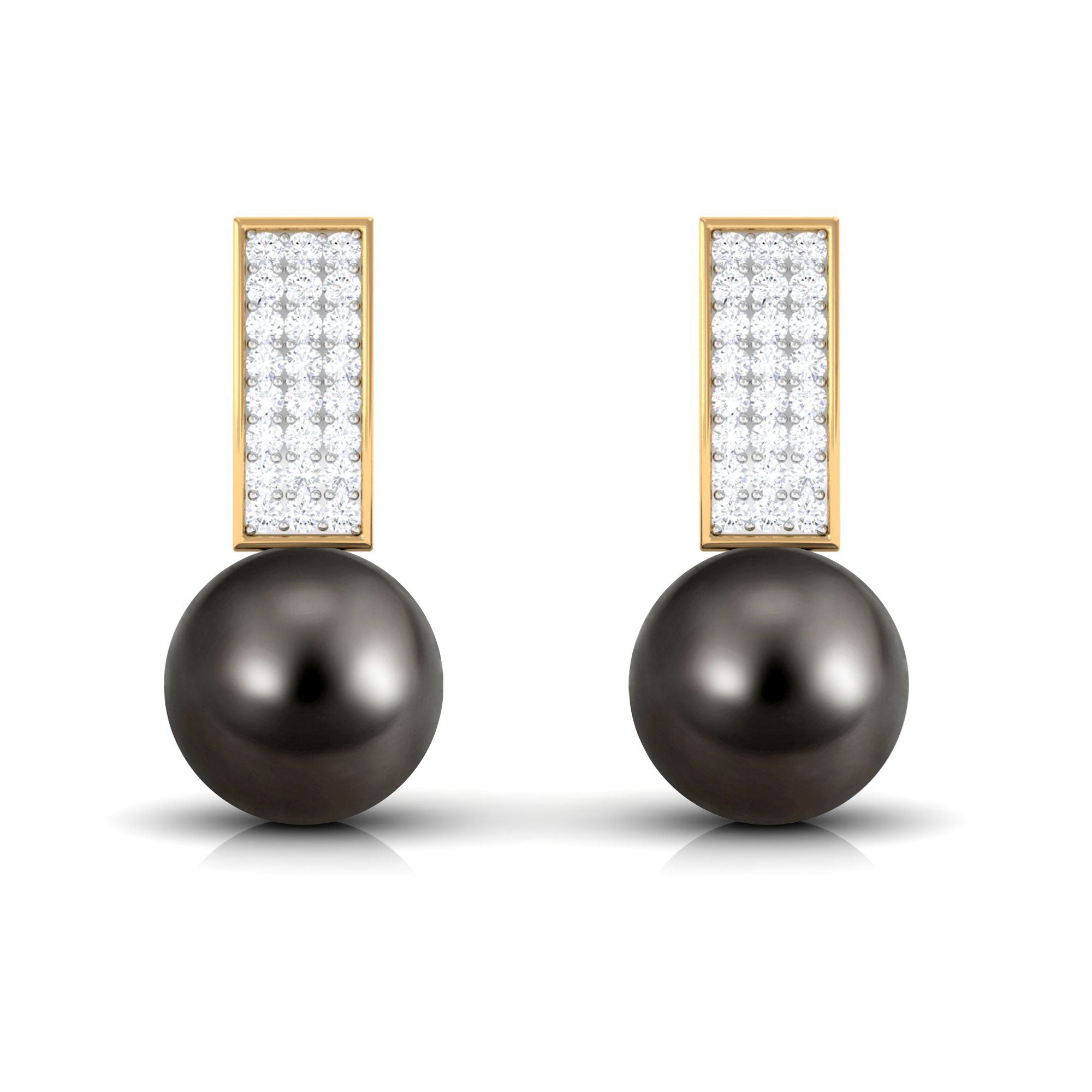 Grab these unique Bar Drop Earrings for your special one, showcasing Round Shape Tahitian Pearl and a unique bar design adorned with Round Cut Diamonds secured in Pave Setting. Glam up your looks with these Tahitian Pearl Earrings. They also make a wonderful gift for a woman who loves a unique piece of jewelry.