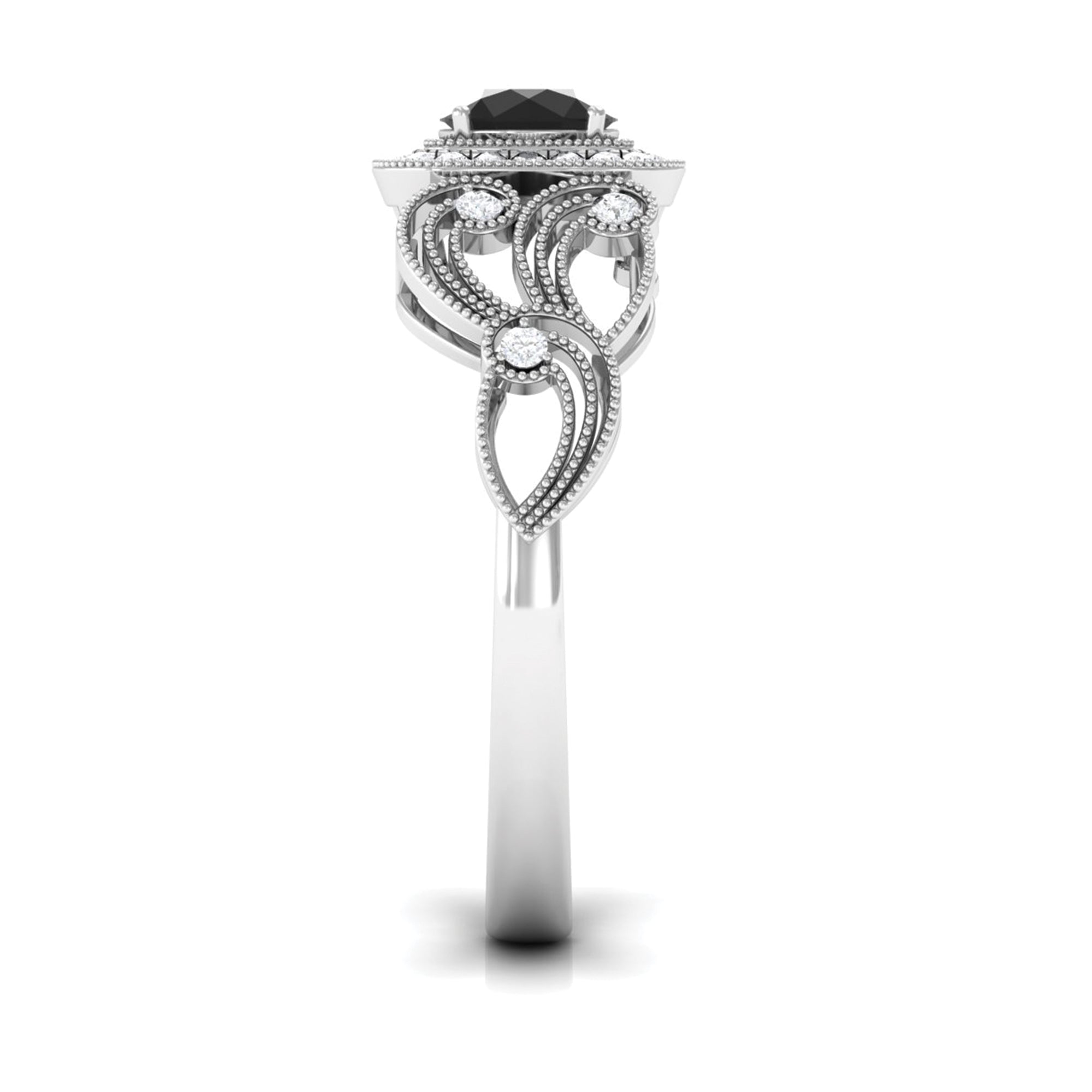 Vintage Created Black Diamond and Diamond Milgrain Engagement Ring