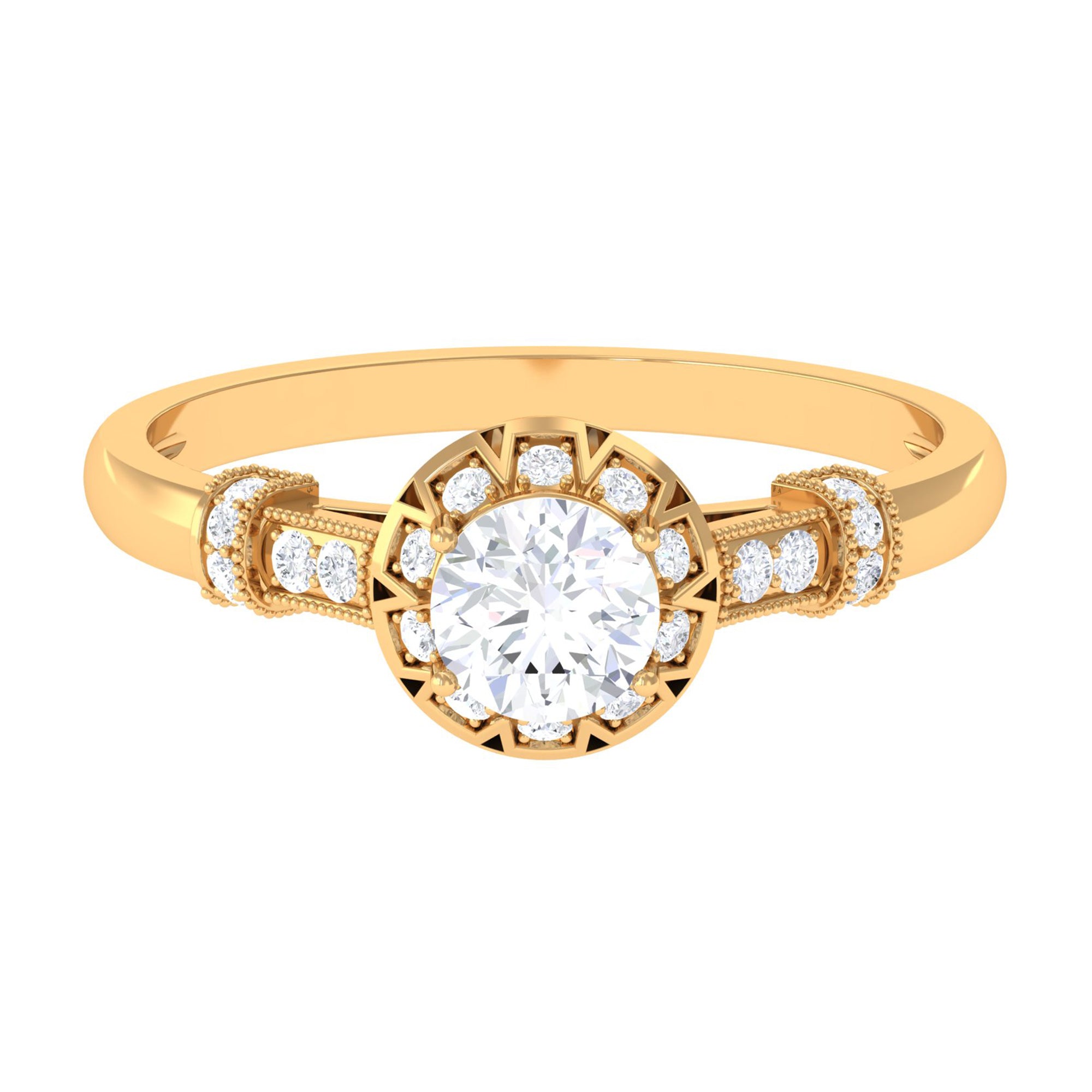 Vintage Cubic Zirconia Engagement Ring with Beaded Gold