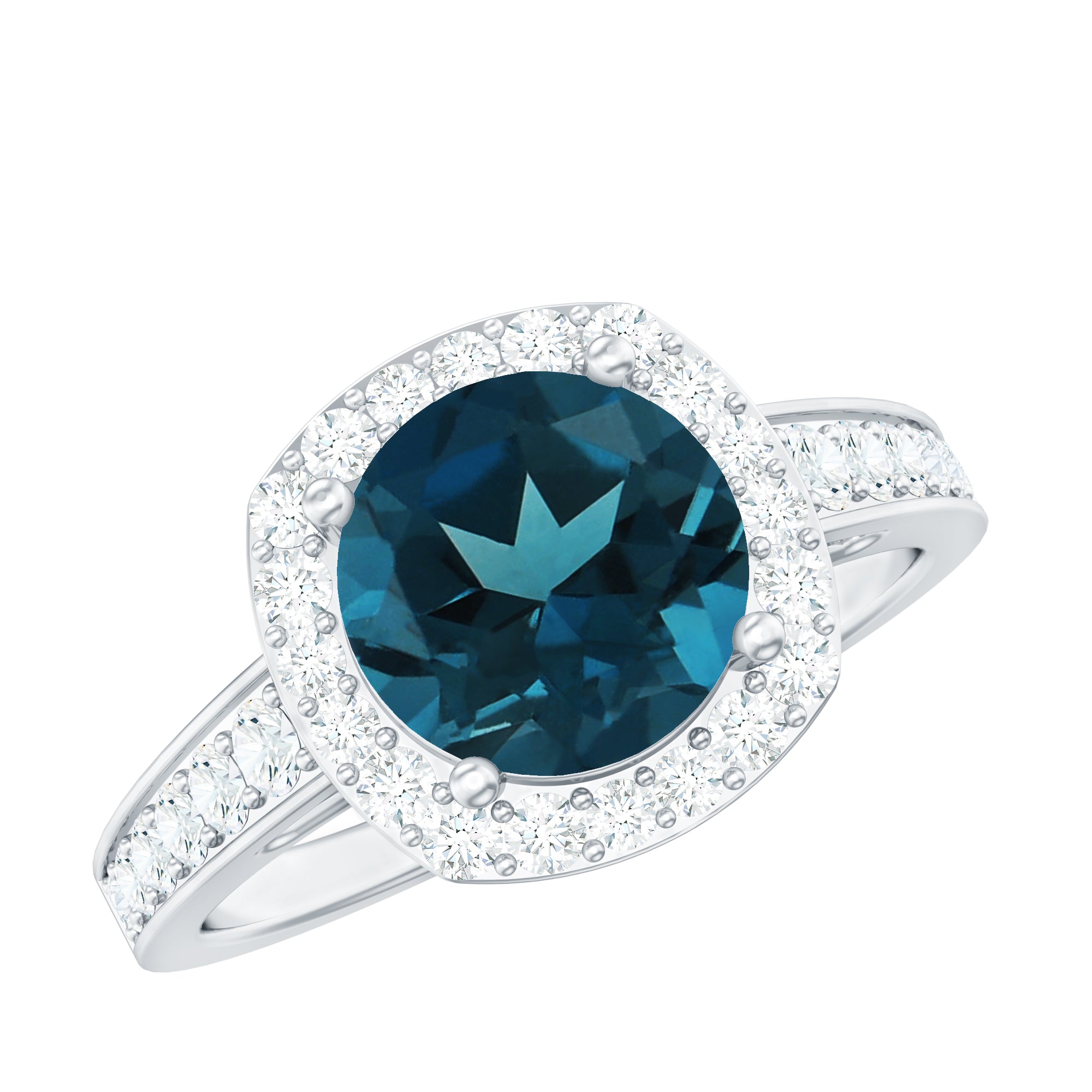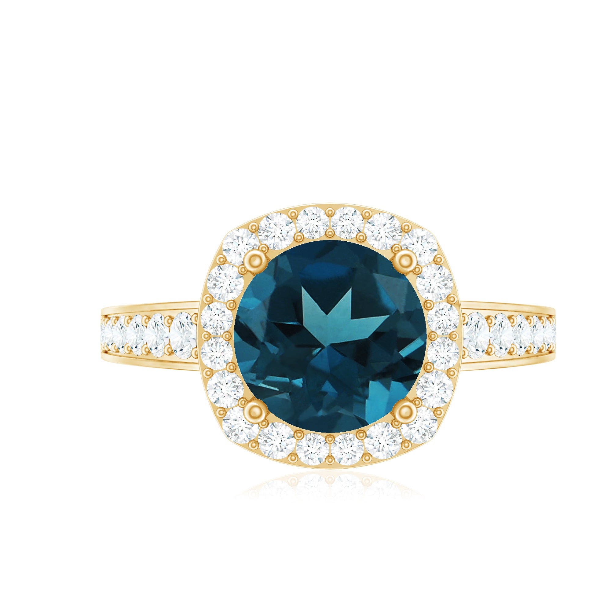 Vintage Halo Engagement Ring with London Blue Topaz and Diamond