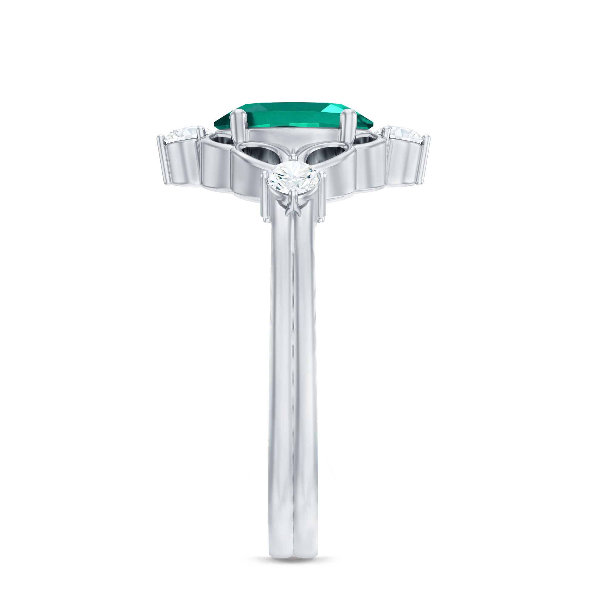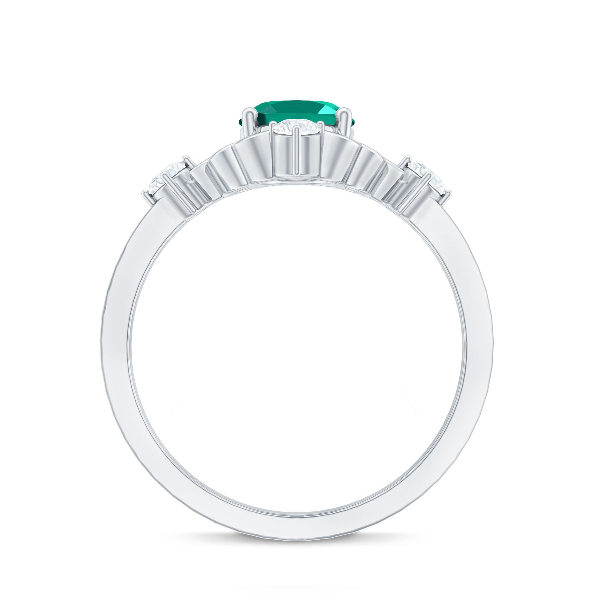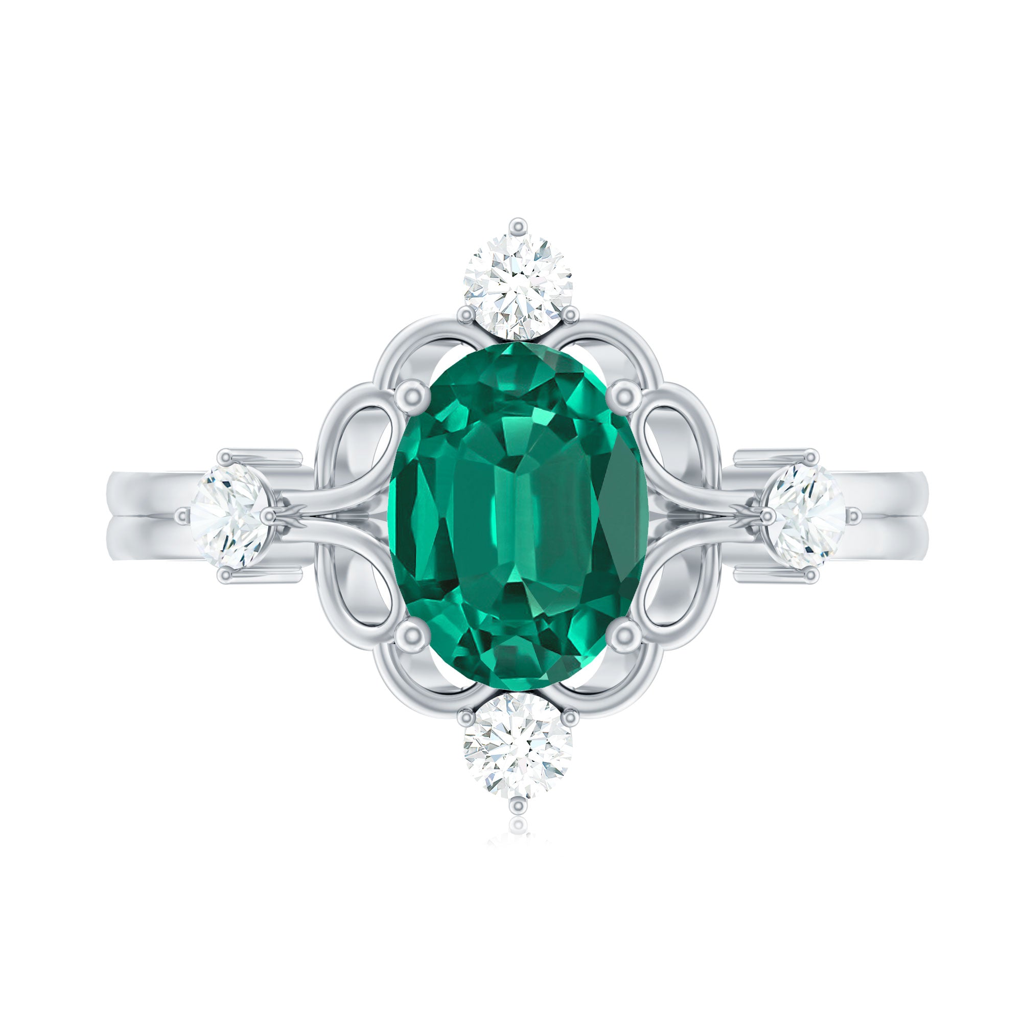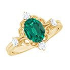 Vintage Inspired 1 Ct Lab Grown Emerald Oval Engagement Ring with Diamond