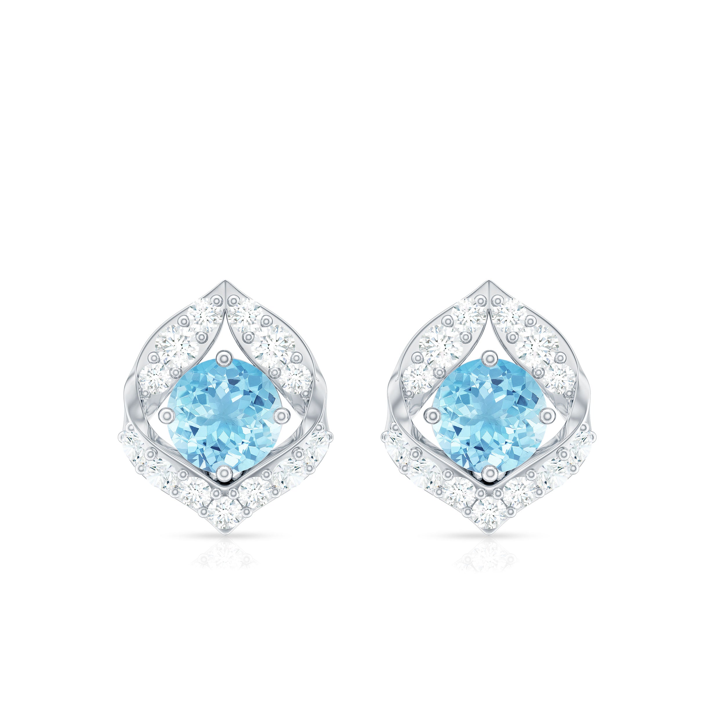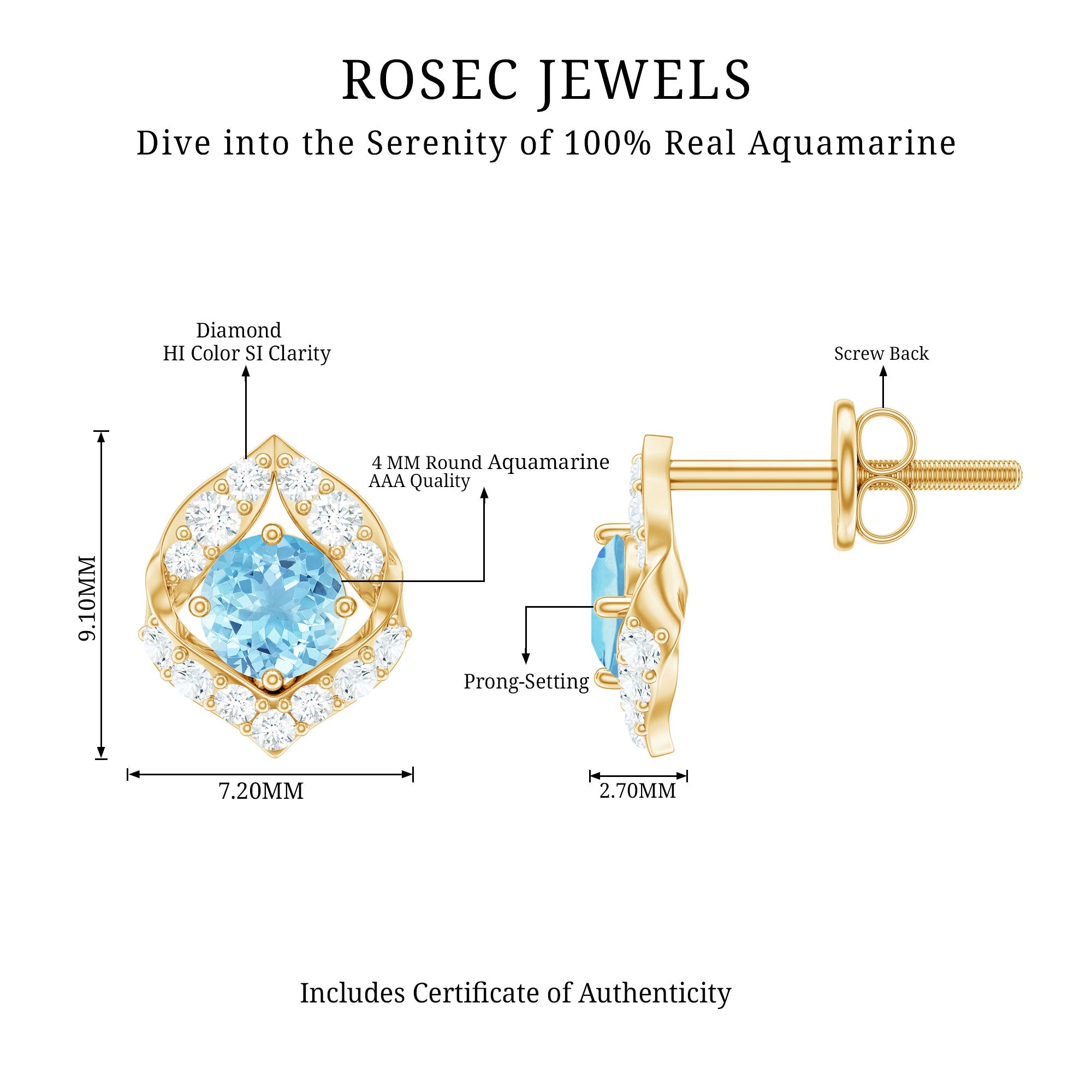 Capture the charm of timeless elegance and nature’s beauty with these exquisite Vintage Inspired Earrings. Designed to enchant, each earring features a 4 mm Round Shape Aquamarine placed gracefully within a delicate Leaf Motif, symbolizing growth, renewal and everlasting grace. The intricate design is further elevated by glittering Diamond stones that line the leaf, adding a touch of vintage sparkle that feels romantic. Secured with a Screw Back Closure for lasting comfort and wear, these Leaf Earrings blend classic artistry with modern craftsmanship. Whether paired with an elegant gown or a chic ensemble, these Aquamarine Diamond Earrings bring a whisper of sophistication and a glow of natural beauty to any occasion. Presented in a signature jewelry box, these Aquamarine Ear Studs make a heartfelt gift for anniversaries, birthdays or simply to celebrate someone special. With their captivating sparkle, these Aquamarine Studs are a poetic expression of love, nature and timeless style.