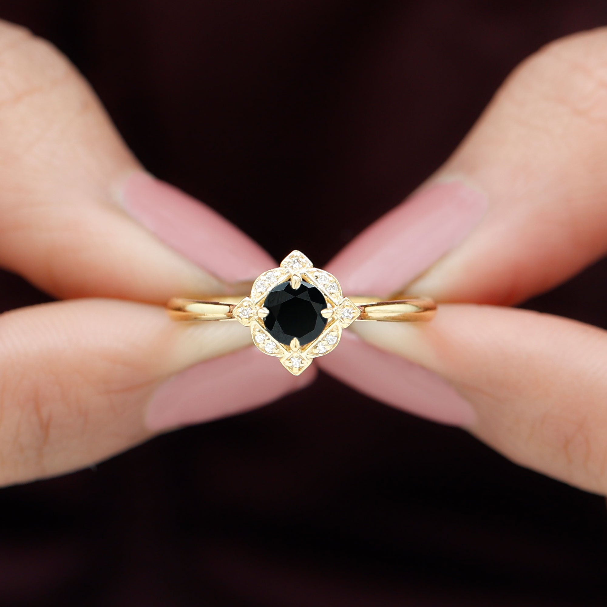 Step into the allure of yesteryears with this Vintage Inspired Black Diamond Engagement Ring with Diamond, a testament to timeless beauty and love.
