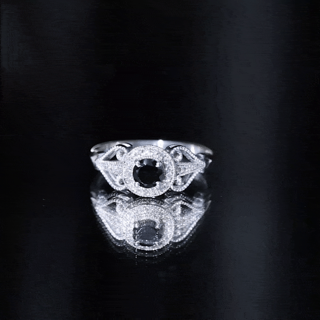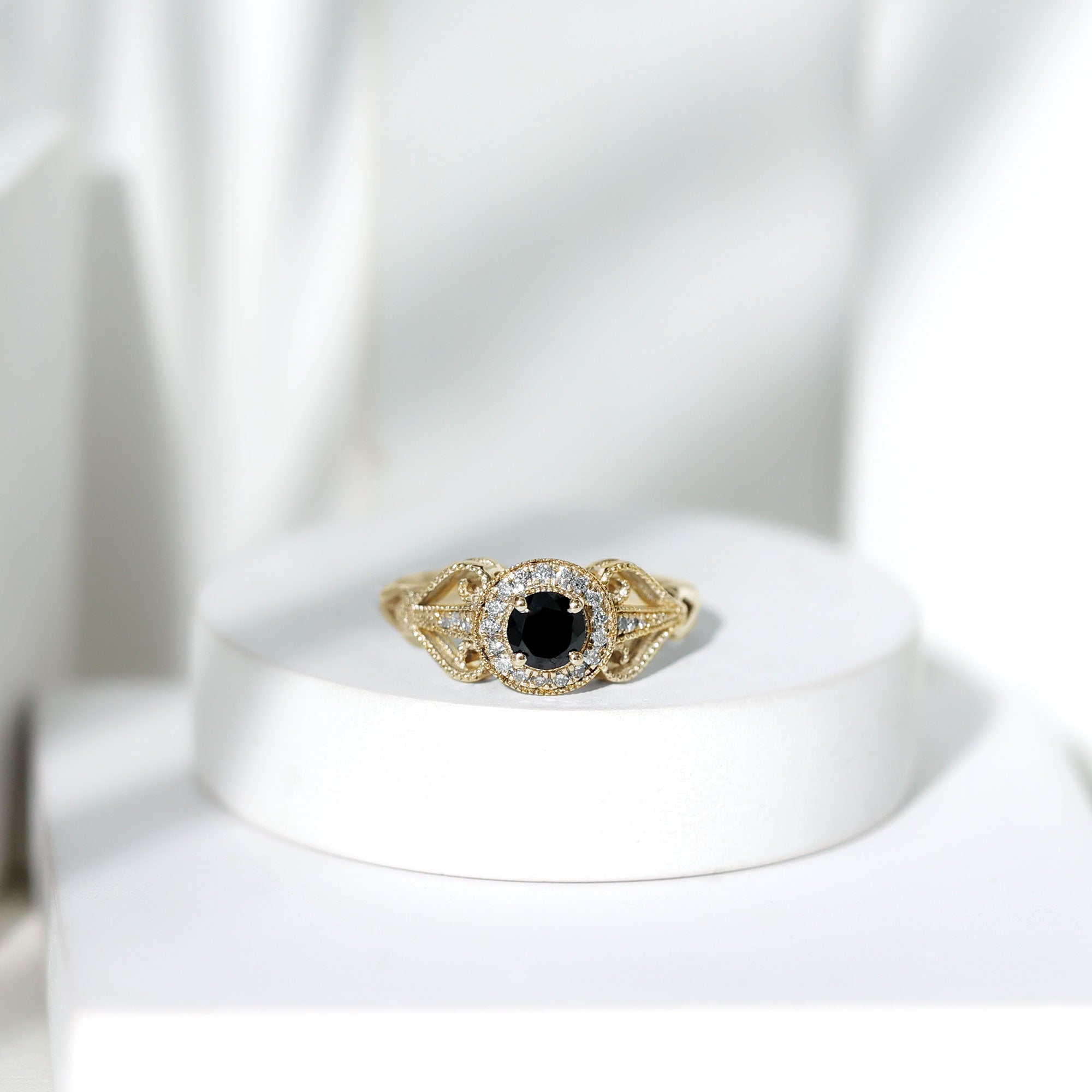 Vintage Inspired Black Spinel and Diamond Engagement Ring