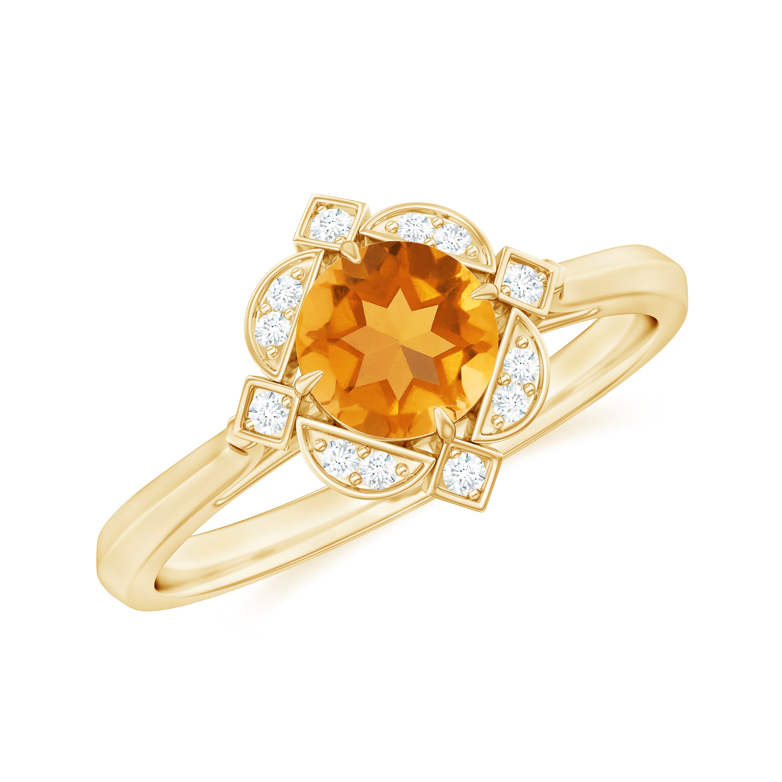 Vintage Inspired Citrine and Diamond Engagement Ring