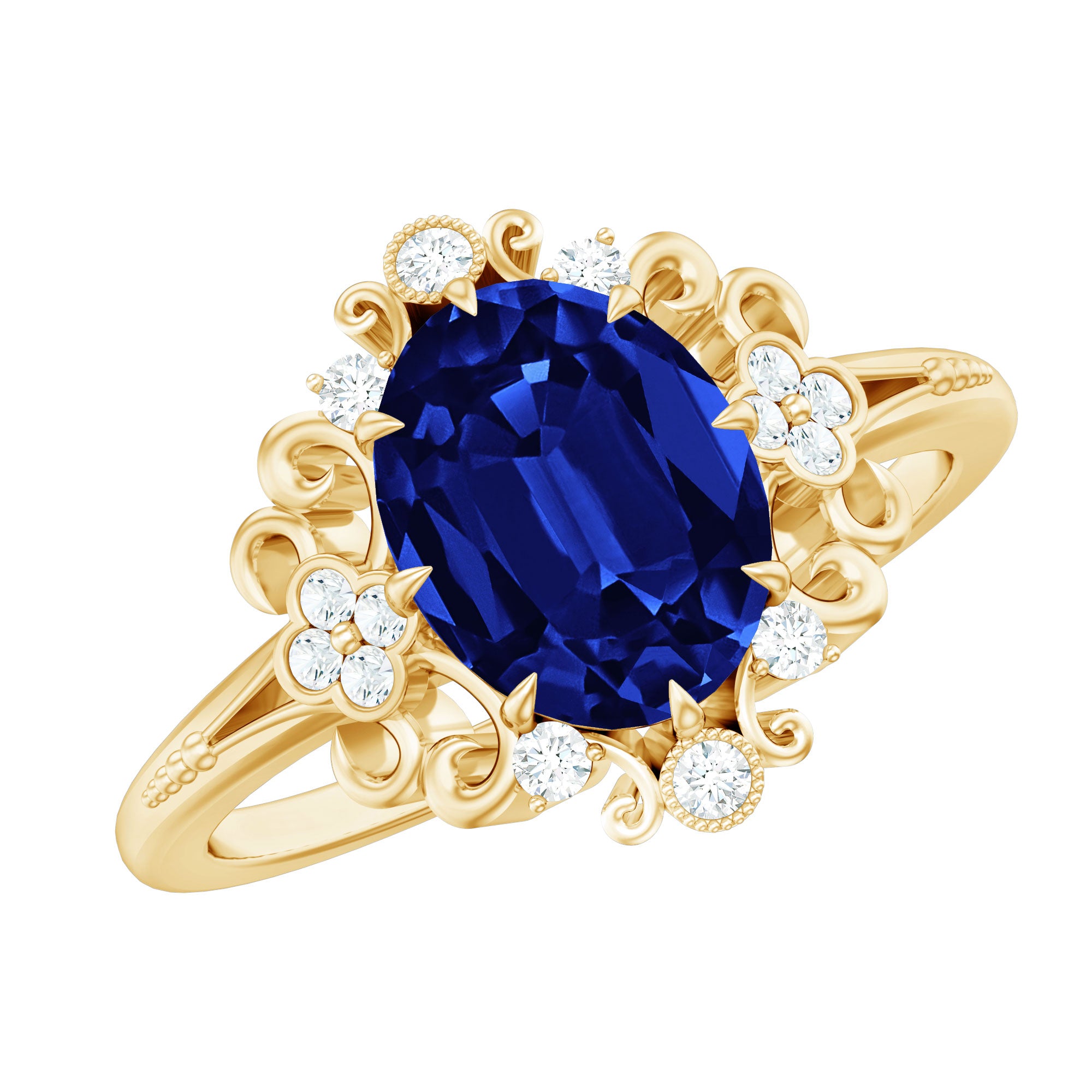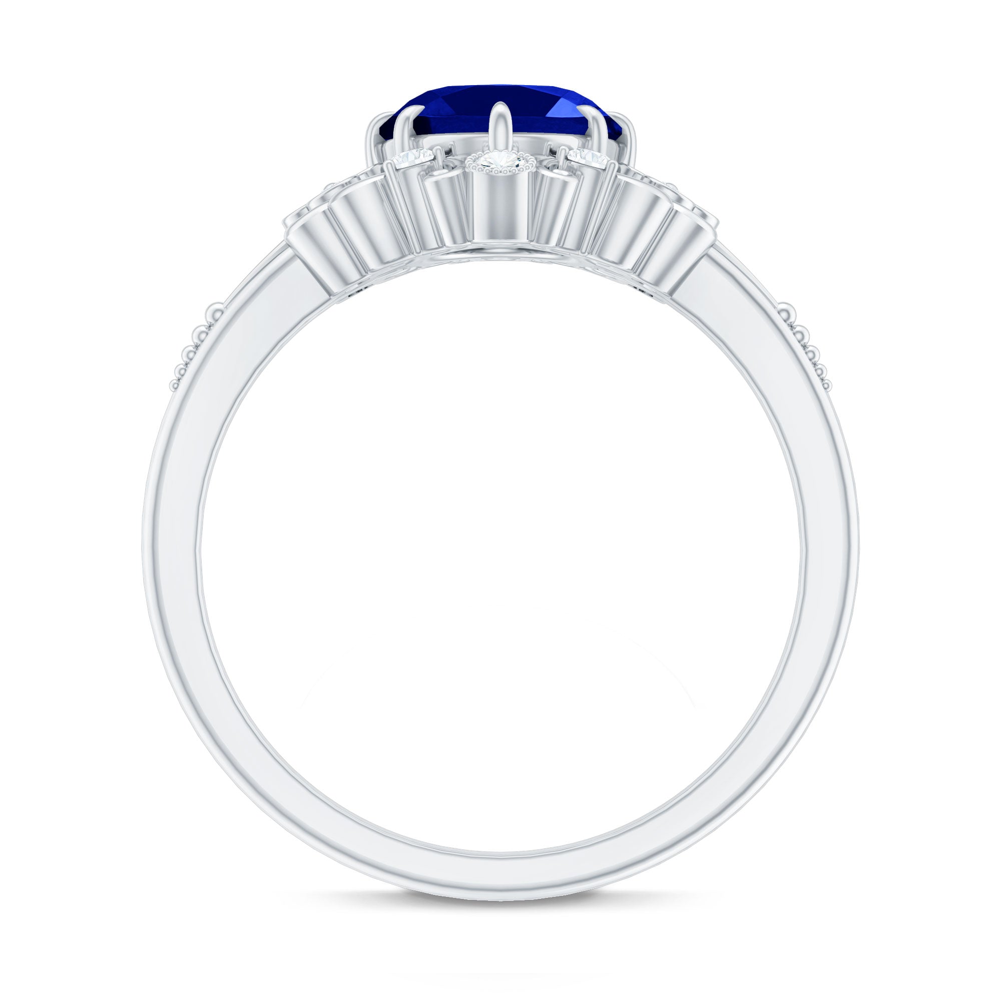 Vintage Inspired Created Blue Sapphire Engagement Ring with Diamond