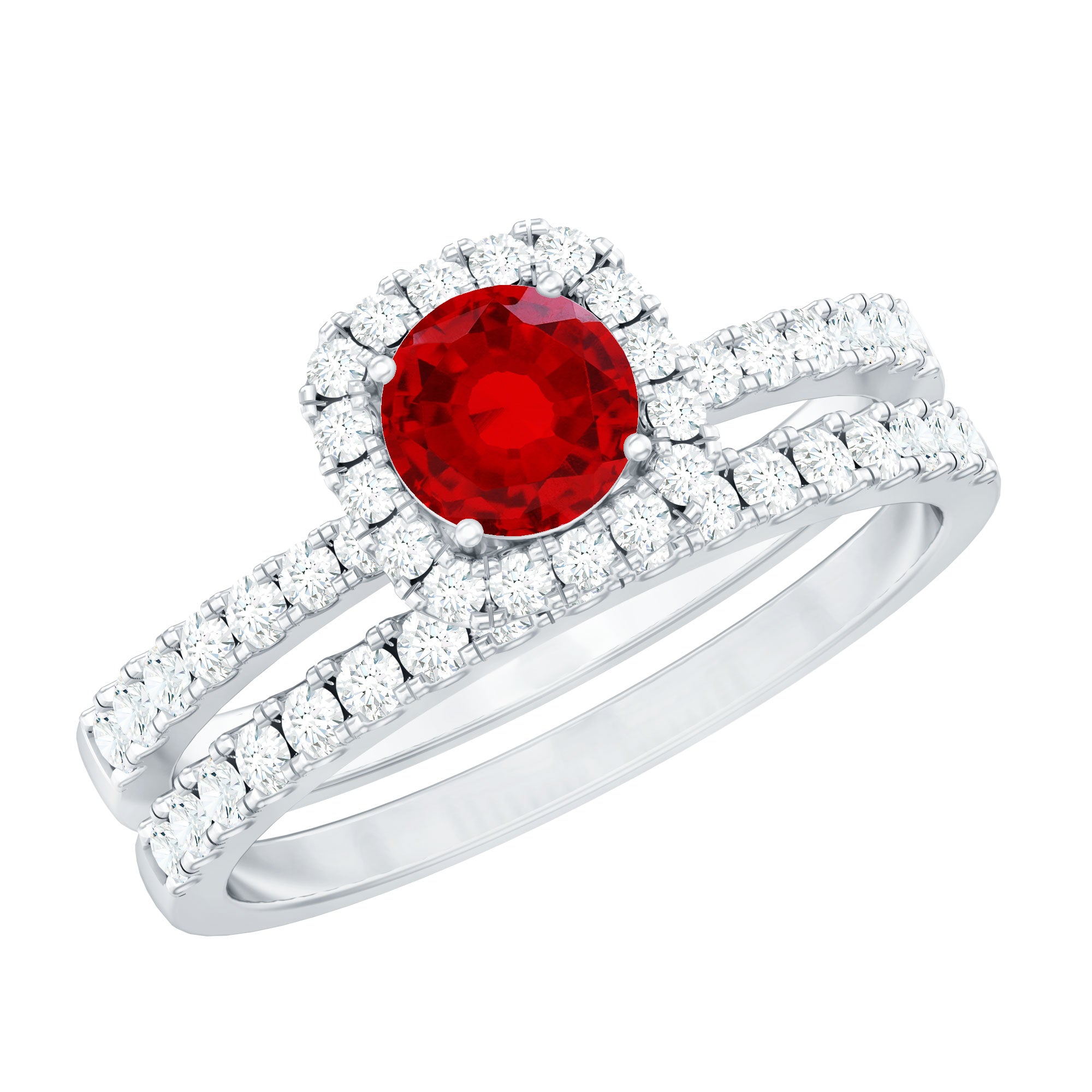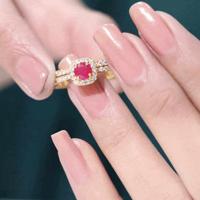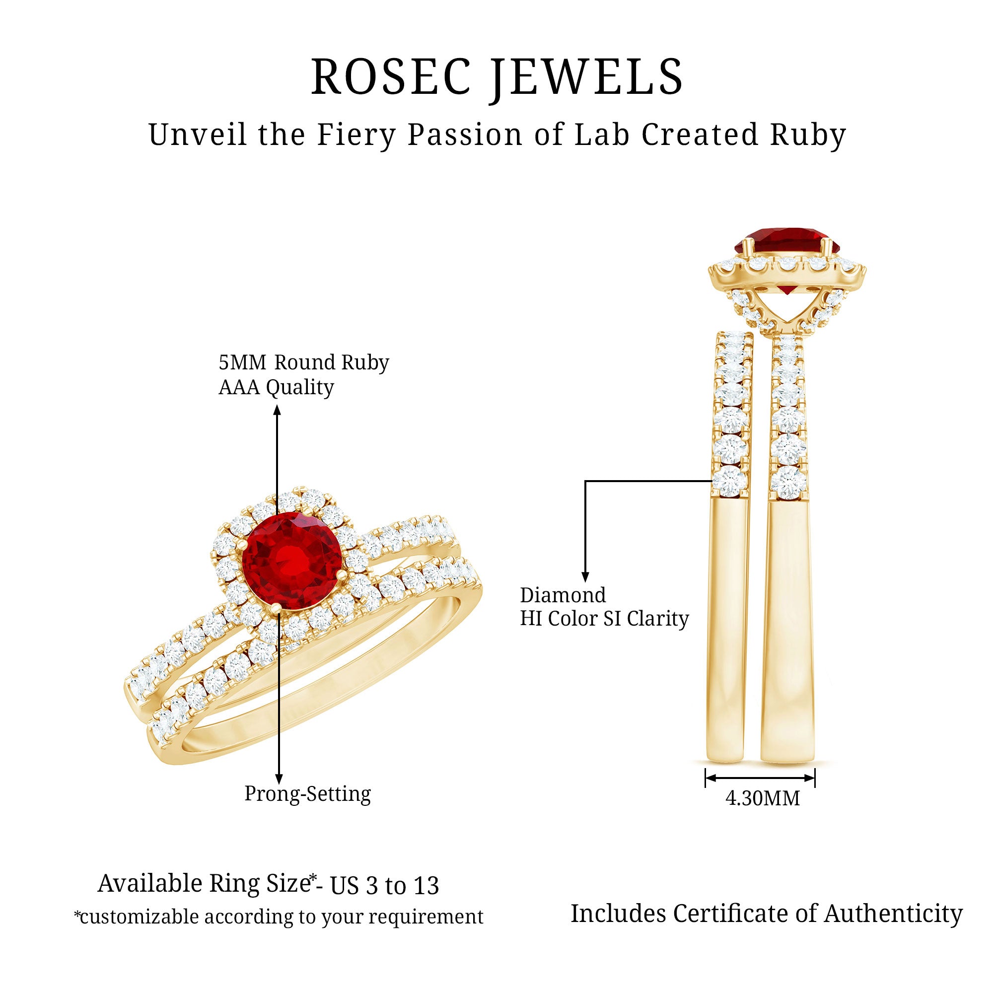 Make your special day unforgettable with this Vintage Ruby Ring Set. This Created Ruby and Diamond Wedding Ring set is the perfect way to show your love and affection to your partner. With its timeless design and exquisite craftsmanship, this ring set is sure to bring a smile to her face and make her feel truly special.