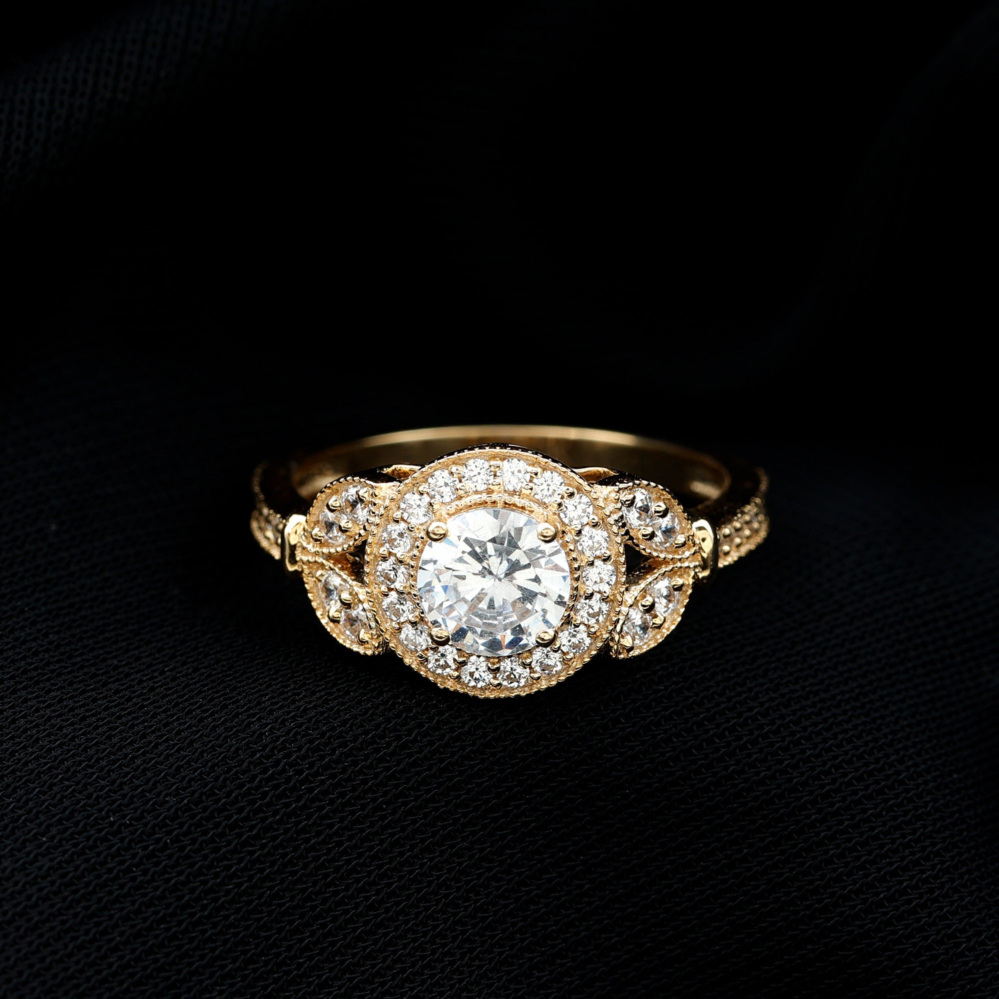 Vintage Inspired Cubic Zirconia Gold Engagement Ring
