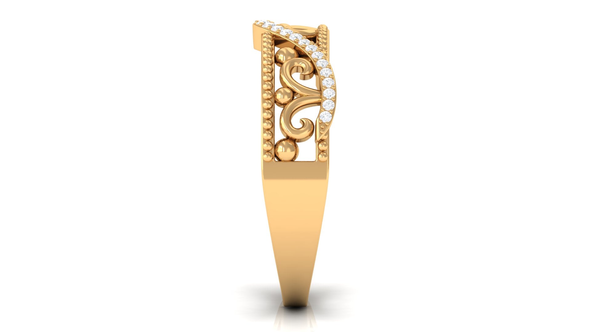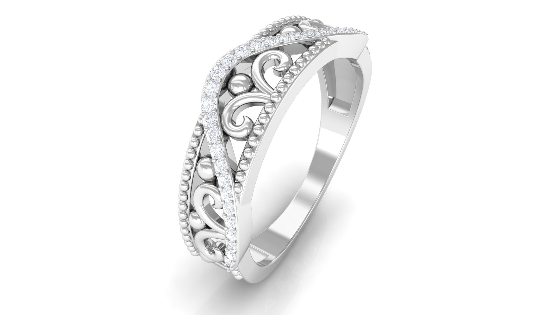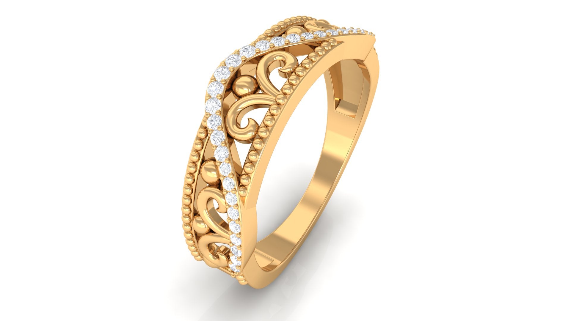 Indulge your classic taste in jewelry and appreciate the allure of vintage-inspired with this exquisite Diamond Band Ring. The simply designed band is adorned with Round brilliant cut Diamond, delicately embellished to create a captivating sparkle. This vintage-inspired band is a symbol of refined taste and timeless beauty. Embrace the charm of classic jewelry and let this Art Deco Wedding Ring be a cherished addition to your collection. Crafted in classic style, this Vintage Filigree Ring stands the test of time, echoing a different era of feel that is vintage and modern. As a new classic, it illustrates endless love, having the appearance as a token of love and commitment, holding a special place in the hearts of couples embarking on the journey of marriage. Meticulously crafted and incorporating classic design, this Vintage Wedding Ring ensures it remains eternally stylish. Having exceptional radiance, this Filigree Wedding Band symbolizes everlasting beauty with its exquisite arrangement that combines simplicity and sophistication. It also ensures it becomes a cherished symbol of love.