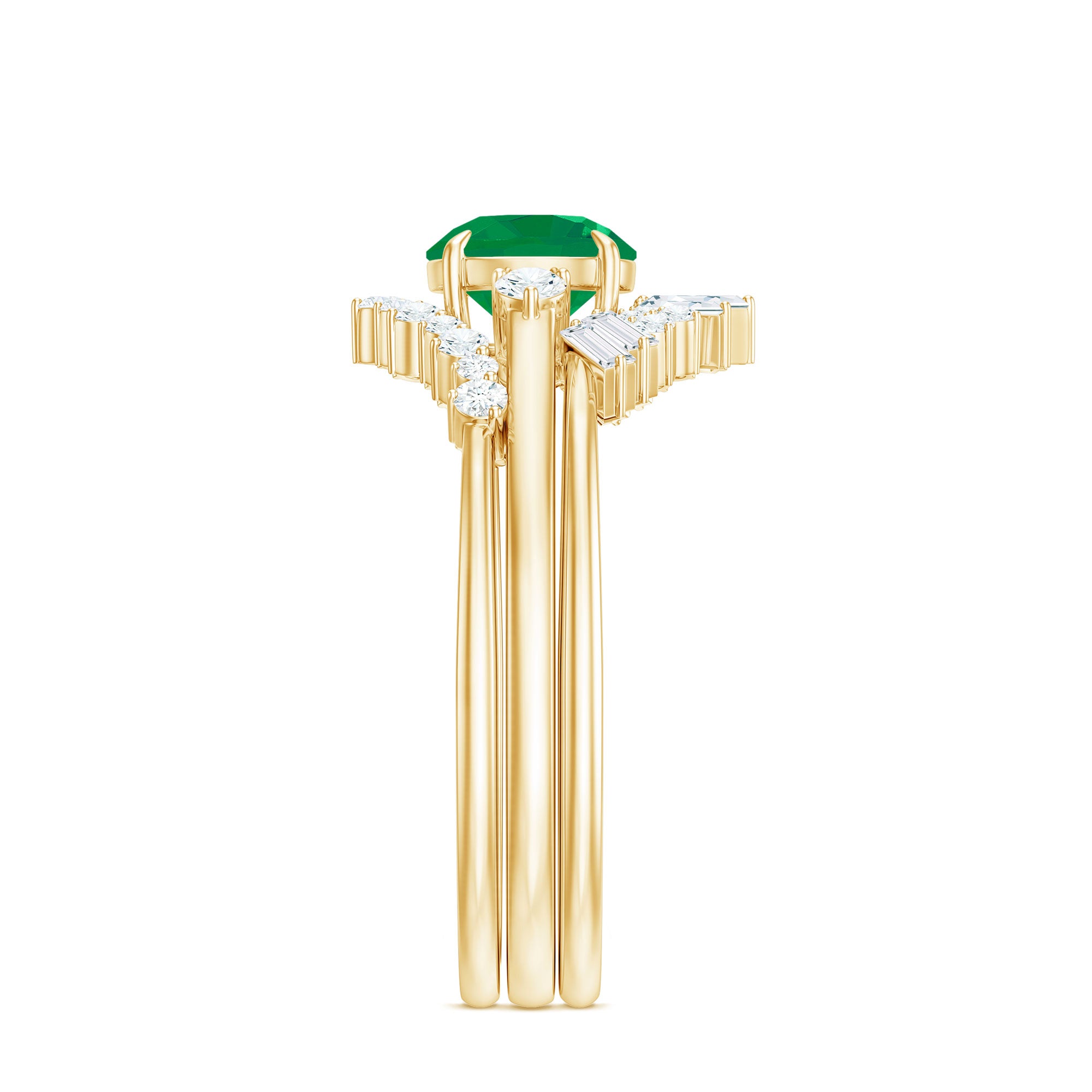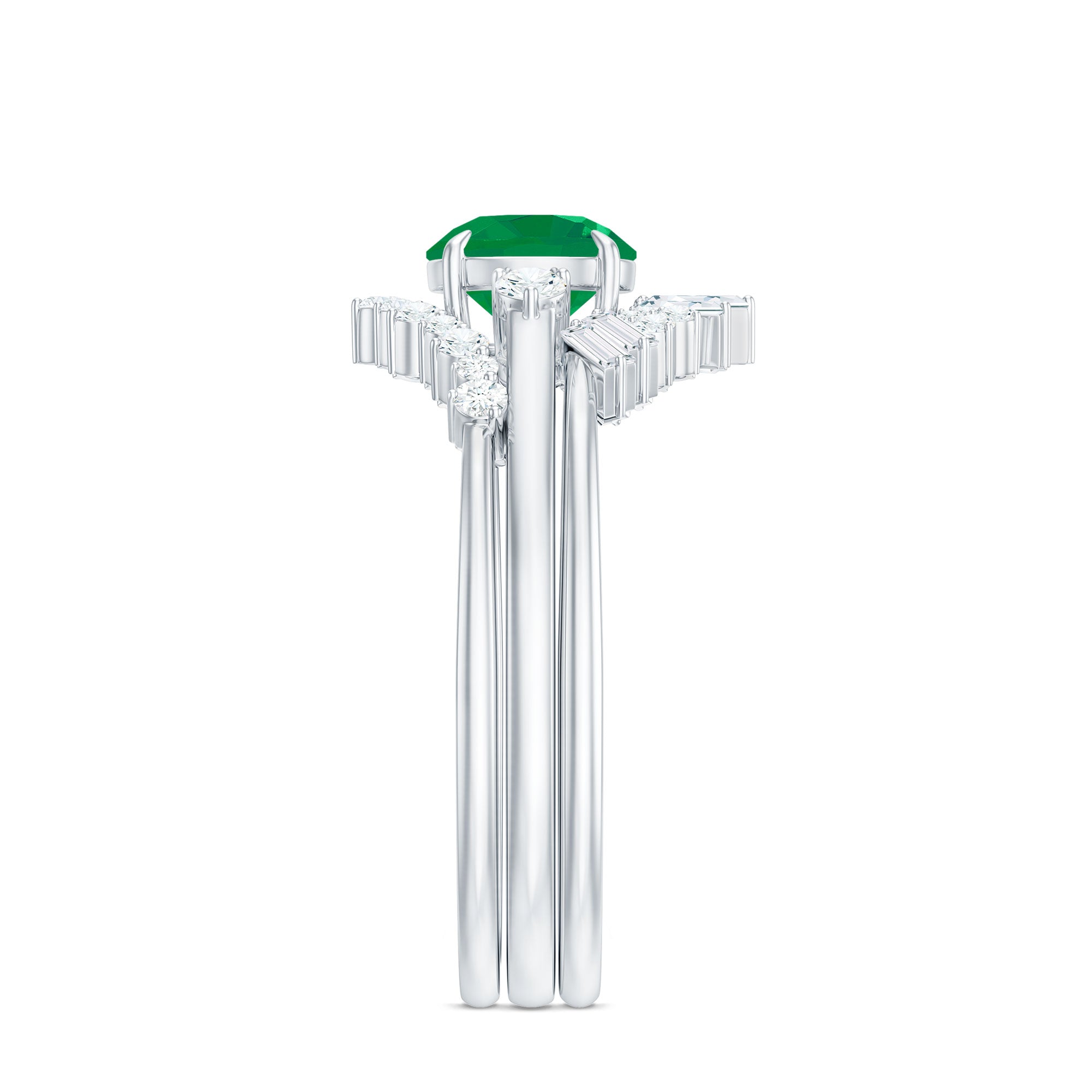 Vintage Inspired Emerald Diamond Wedding Bridal Ring Set of 3