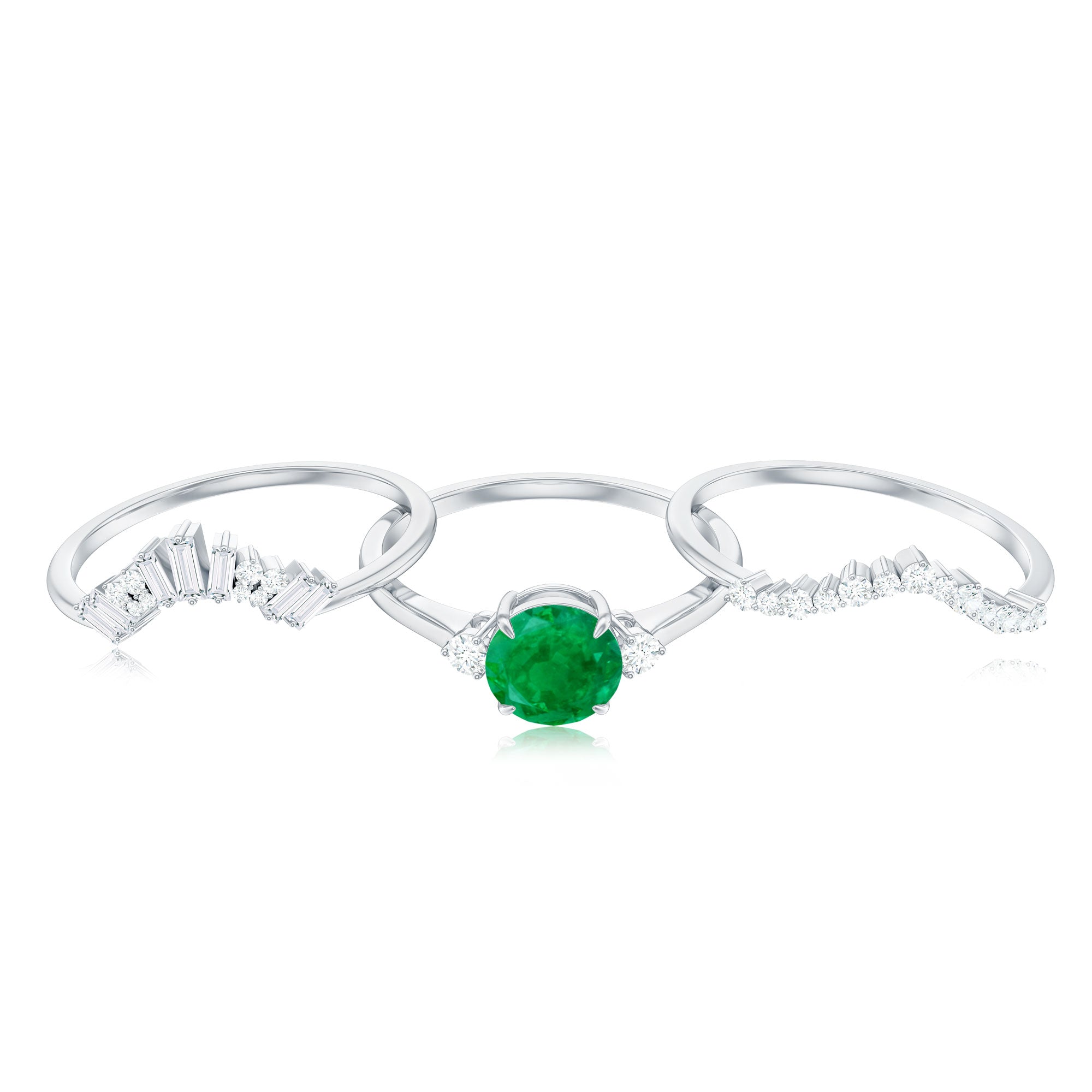 Immerse yourself in timeless elegance with this Wedding Bridal Ring Set, a trio designed to celebrate love in its most radiant form. The solitaire engagement ring dazzles with a round emerald at its center, flanked by a sparkling Diamond that captures the light from every angle, evoking both sophistication and heartfelt devotion. Complementing it, one gracefully Curved Wedding Band is adorned with Round and Baguette Shape Diamond stones, while the other band sparkles with Round Diamond stones, together creating a harmonious, layered design that symbolizes unity, balance and eternal commitment. Available in multiple sizes to ensure a perfect fit, this Emerald Diamond Engagement Ring with Wedding Band comes elegantly presented in a jewelry box, ready to turn proposals, anniversaries or meaningful milestones into unforgettable moments. This Emerald Wedding Ring Set is a luminous testament to shared dreams, enduring passion and the beauty of a love story unfolding. Let this enchanting trio shine as the centerpiece of your journey together, reflecting elegance, romance and devotion with every sparkling facet.