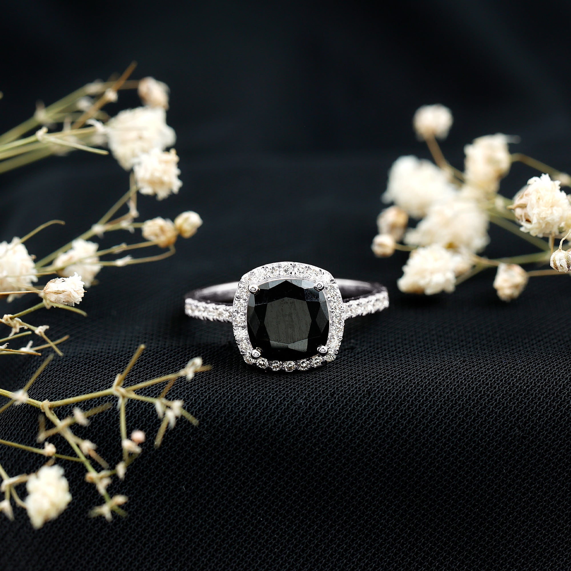 Vintage Inspired Lab Created Black Diamond Engagement Ring with Diamond