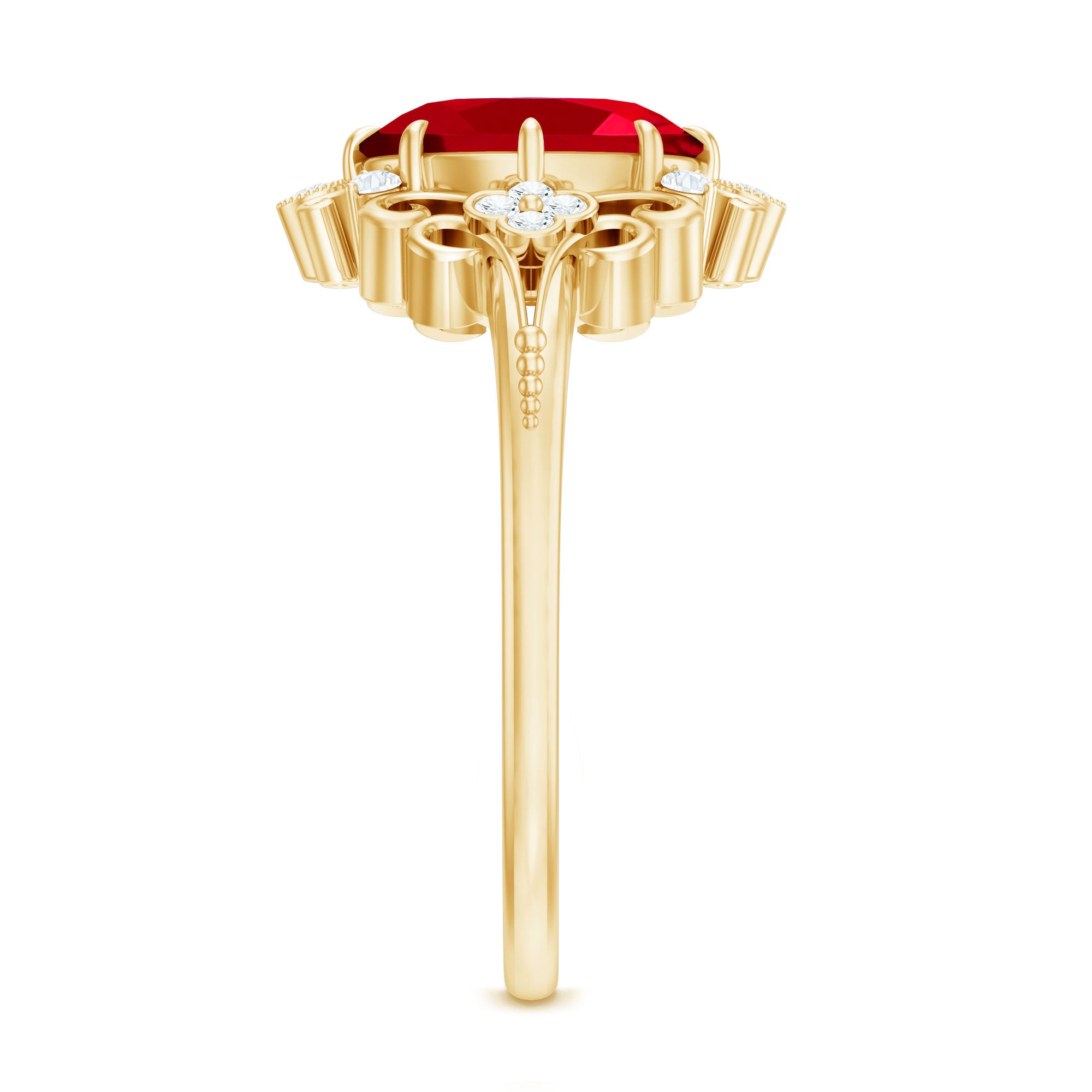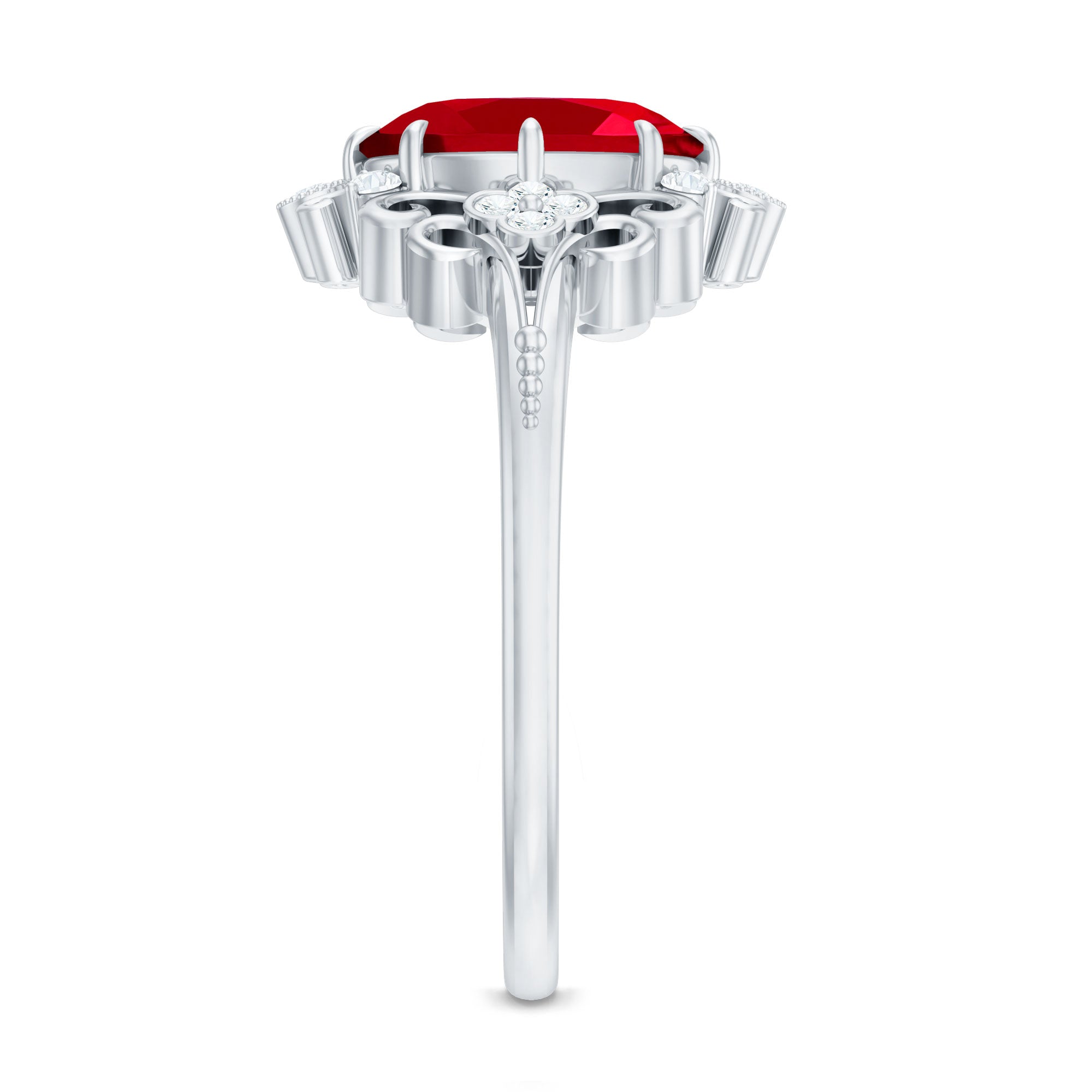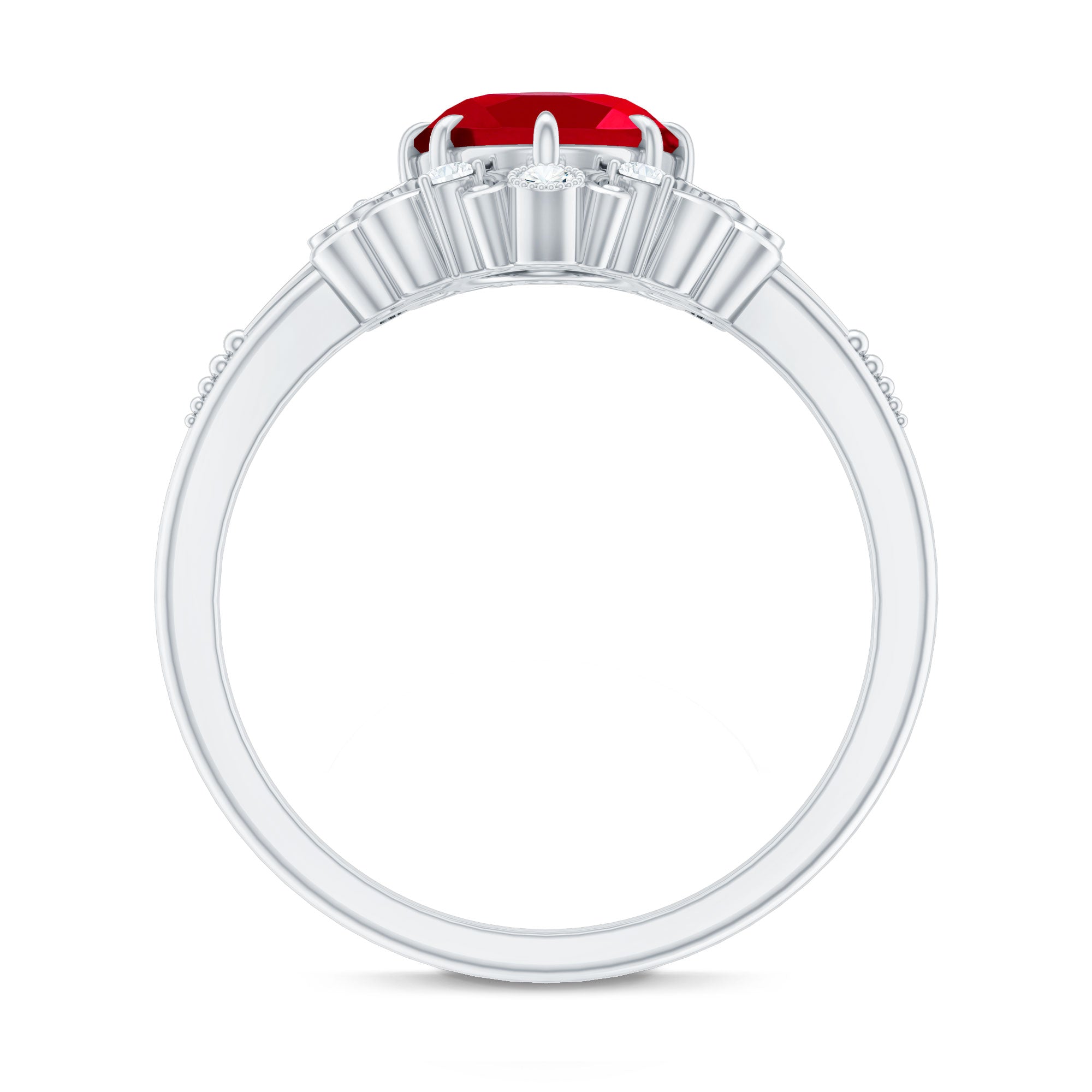 Vintage Inspired Lab Created Ruby and Diamond Engagement Ring