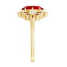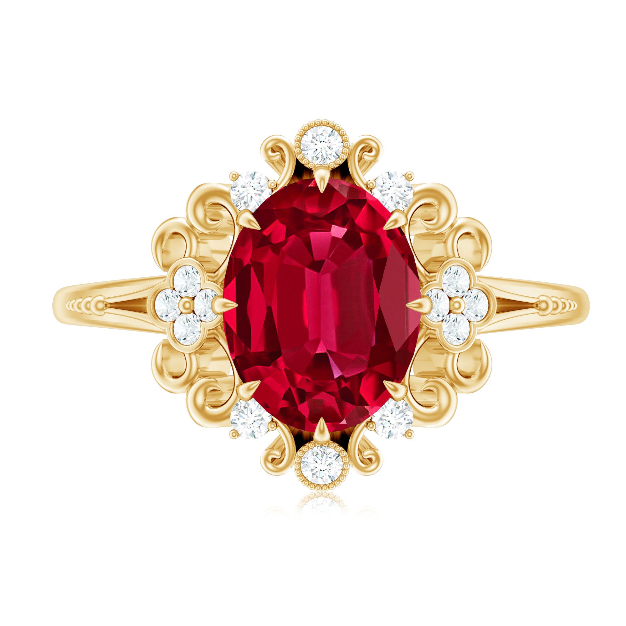 This elegant Vintage Inspired Engagement Ring combines timeless beauty with a touch of modern charm. At its heart shines a breathtaking 8X10 MM oval cut lab created ruby, securely set in claw setting. Enhancing the center stone are brilliant diamond stones, beautifully placed within intricate vintage style patterns that add character to the design. The detailed craftsmanship gives the Oval Cut Engagement Ring a graceful and antique feel while maintaining a contemporary look. Every element, from the fine metalwork to the carefully set diamonds, is designed to highlight the ruby’s radiant color and sparkle. Perfect for the bride who appreciates tradition but also values individuality, this piece blends old-world romance with modern sophistication. It is versatile enough to complement both classic and contemporary bridal styles, making it a meaningful choice for a lifetime of love. Crafted with precision and care, this Lab Created Ruby and Diamond Engagement Ring is made to last and shine for years to come. It arrives in a beautiful jewelry box, ready for gifting, and includes a Certificate of Authenticity to ensure the quality and craftsmanship of your piece. With its rich color, sparkling details, and thoughtful design, this Vintage Ruby Ring is a true celebration of love and timeless beauty.