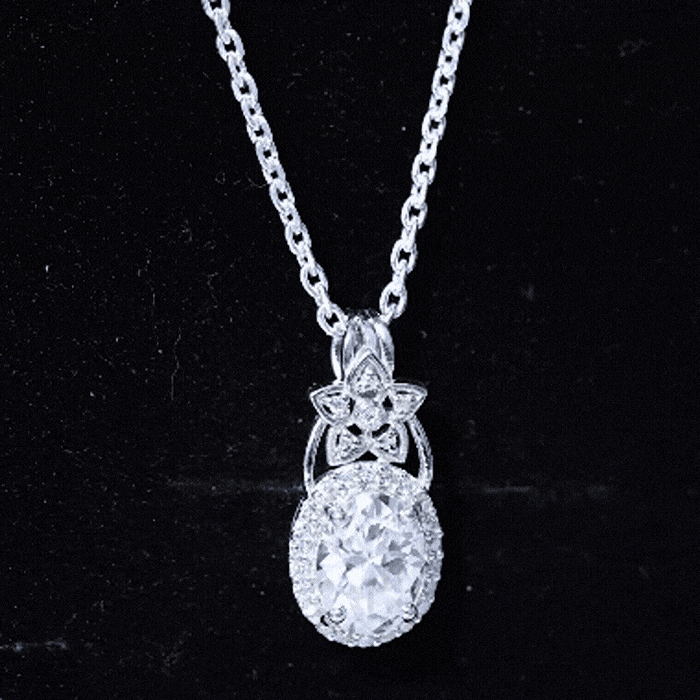 Vintage Inspired Moissanite Oval Drop Pendant Necklace with Chain