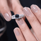 Step into timeless elegance with this beautifully designed Vintage Black Onyx Engagement Ring, perfect for someone who loves classic details with a modern edge. At the center of the Antique Looking Engagement Ring sits a 7 MM round cut black onyx, held securely in basket setting. Accentuating the band are shimmering HI-SI quality round cut diamonds placed with care, offering just the right amount of sparkle to enhance the rich hue of the AAA quality onyx. A delicate beaded pattern runs along the band, giving the Black Onyx and Diamond Ring a vintage inspired feel that is both graceful and full of character. More than just a beautiful accessory, onyx holds special meaning, it is believed to represent love, loyalty, and protection, making this Antique Black Onyx Ring not only a stunning statement piece but also a meaningful symbol of your bond. It is a thoughtful choice for proposals, anniversaries, or simply as a way to express your affection and connection. Whether paired with a dress for a formal evening or worn daily as a reminder of your relationship, this Black and White Engagement Ring easily complements any look. Its unique design blends tradition with contemporary style, making it a lasting addition to any jewelry collection.