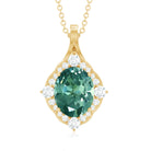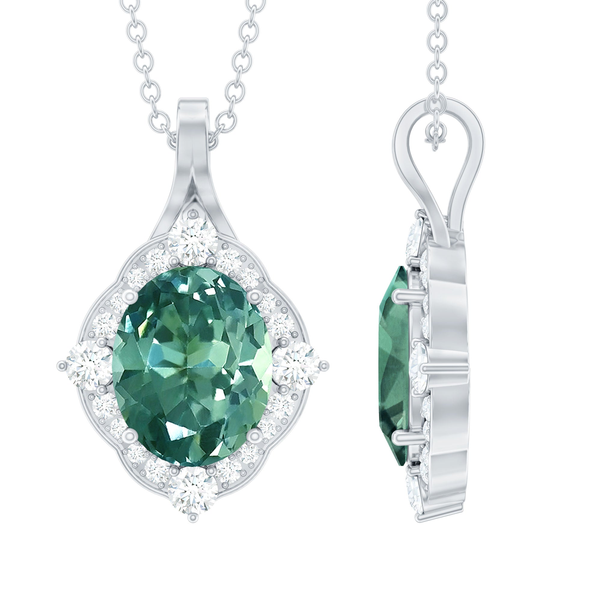 Vintage Inspired Oval Created Green Sapphire and Diamond Halo Pendant