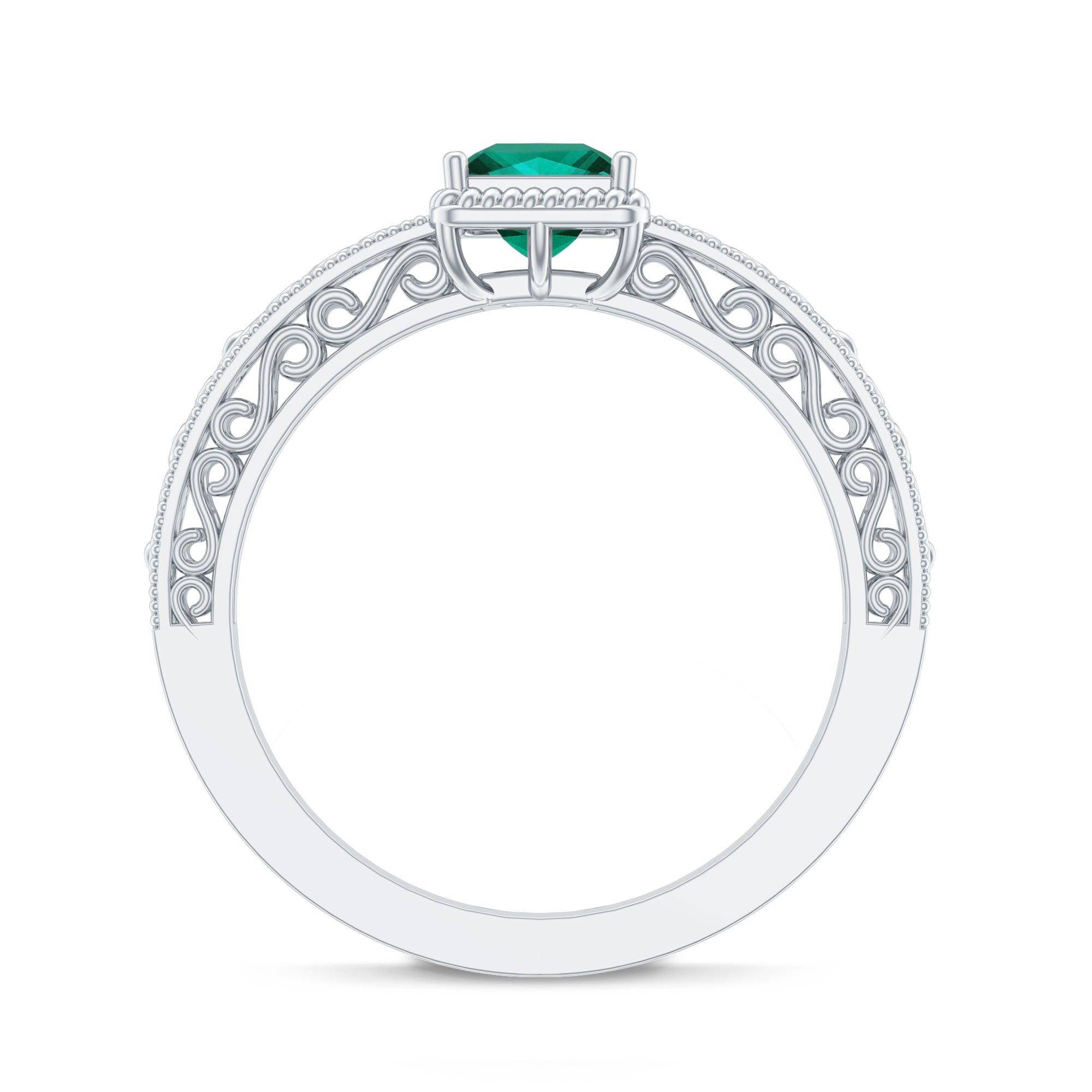 Vintage Inspired Princess Cut Lab Grown Emerald Promise Ring with Filigree Details