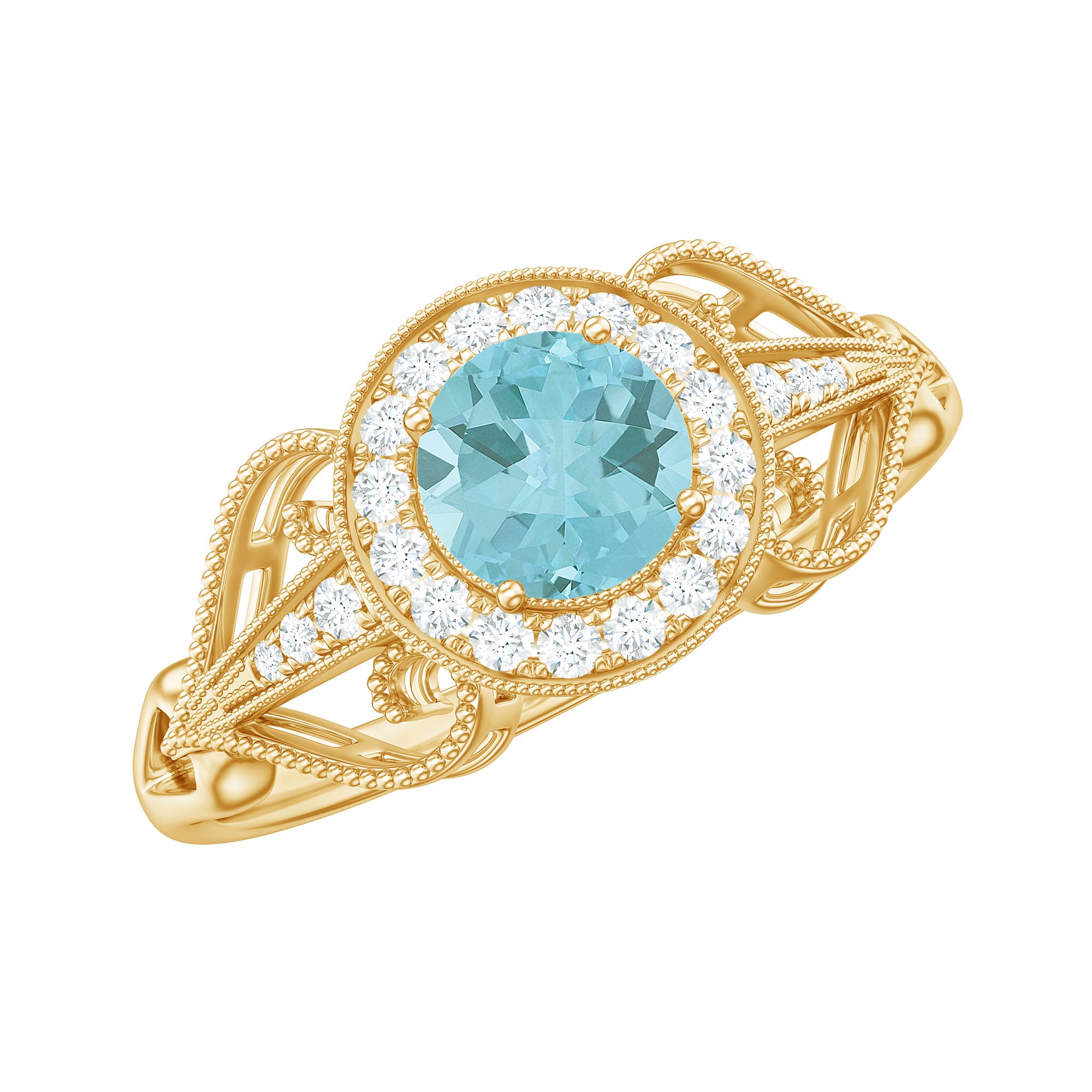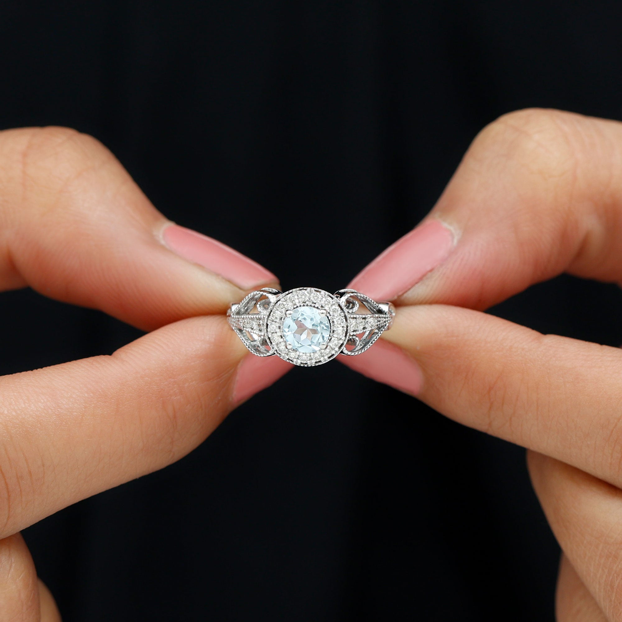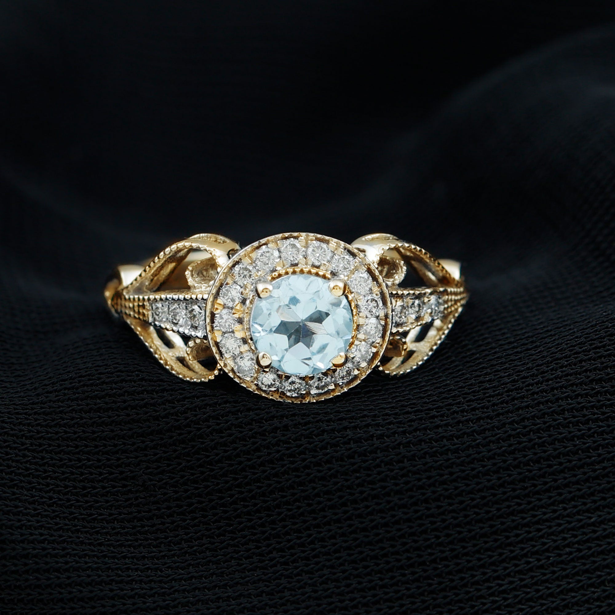 Capture the essence of timeless elegance with this phenomenal and classic Engagement Ring. A stunning Round Shape Sky Blue Topaz takes center stage, embraced by a dazzling halo of Round Shape Diamond that enhances the beauty of the shank. This beautiful Engagement Ring exudes grace and sophistication, making it the perfect symbol of your eternal love and commitment.