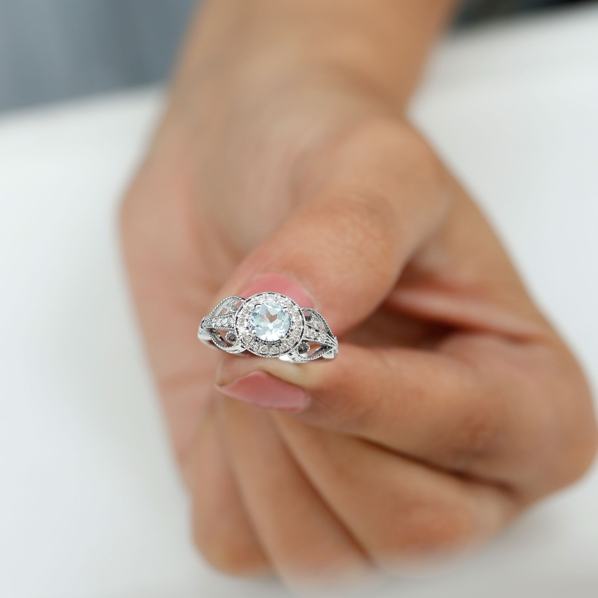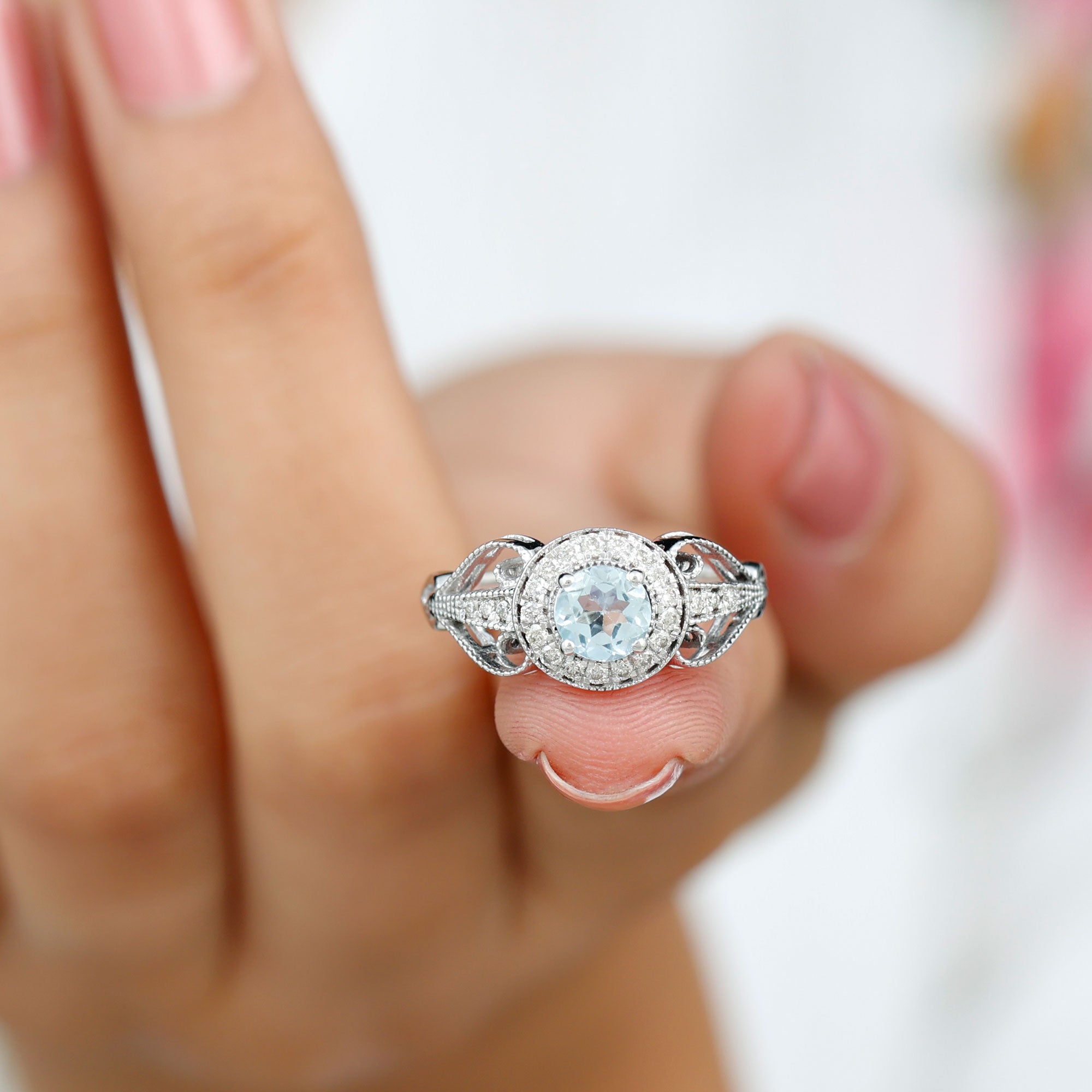 Vintage Inspired Real Sky Blue Topaz and Diamond Engagement Ring