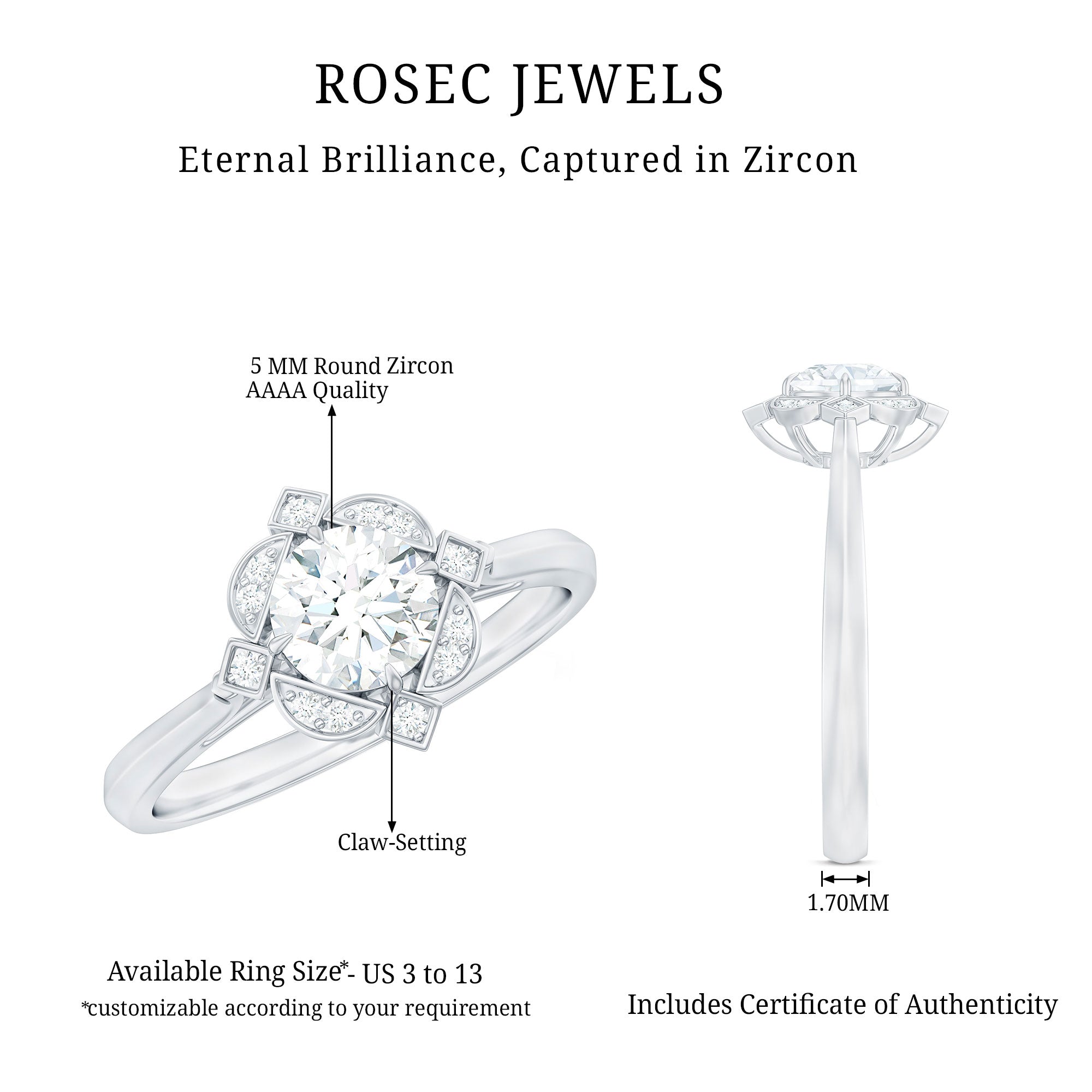 Stay true to your promises with this beautiful zircon engagement ring. Featuring a round-cut zircon in a claw setting at the center, surrounded by additional round-cut zircon in a surface prong setting, this vintage-inspired ring is the epitome of style and elegance. Crafted from solid gold, this cubic zirconia ring is the perfect piece of jewelry for your significant other, a symbol of your love and commitment that they can wear every day. Whether youre celebrating an anniversary, marking a milestone, or simply letting them know how much they mean to you, this vintage engagement ring is the ideal choice. So why wait? Keep your vows with this stunning simulated diamond ring today.