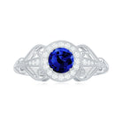 Vintage Lab-Created Blue Sapphire Diamond Engagement Ring