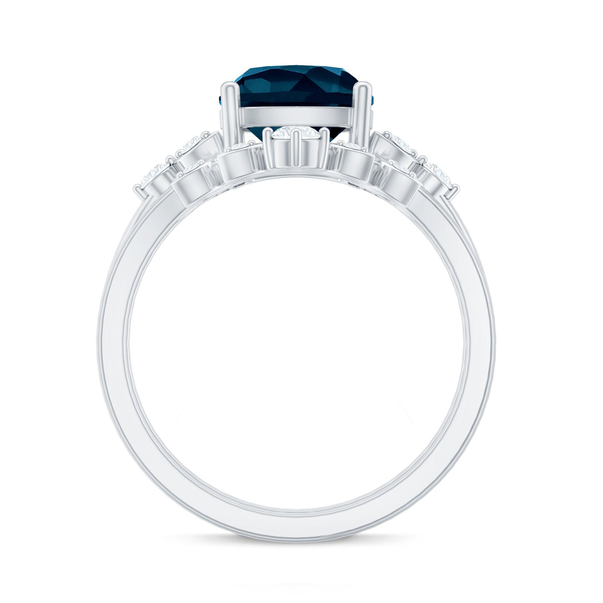 Vintage London Blue Topaz and Diamond Engagement Ring Set