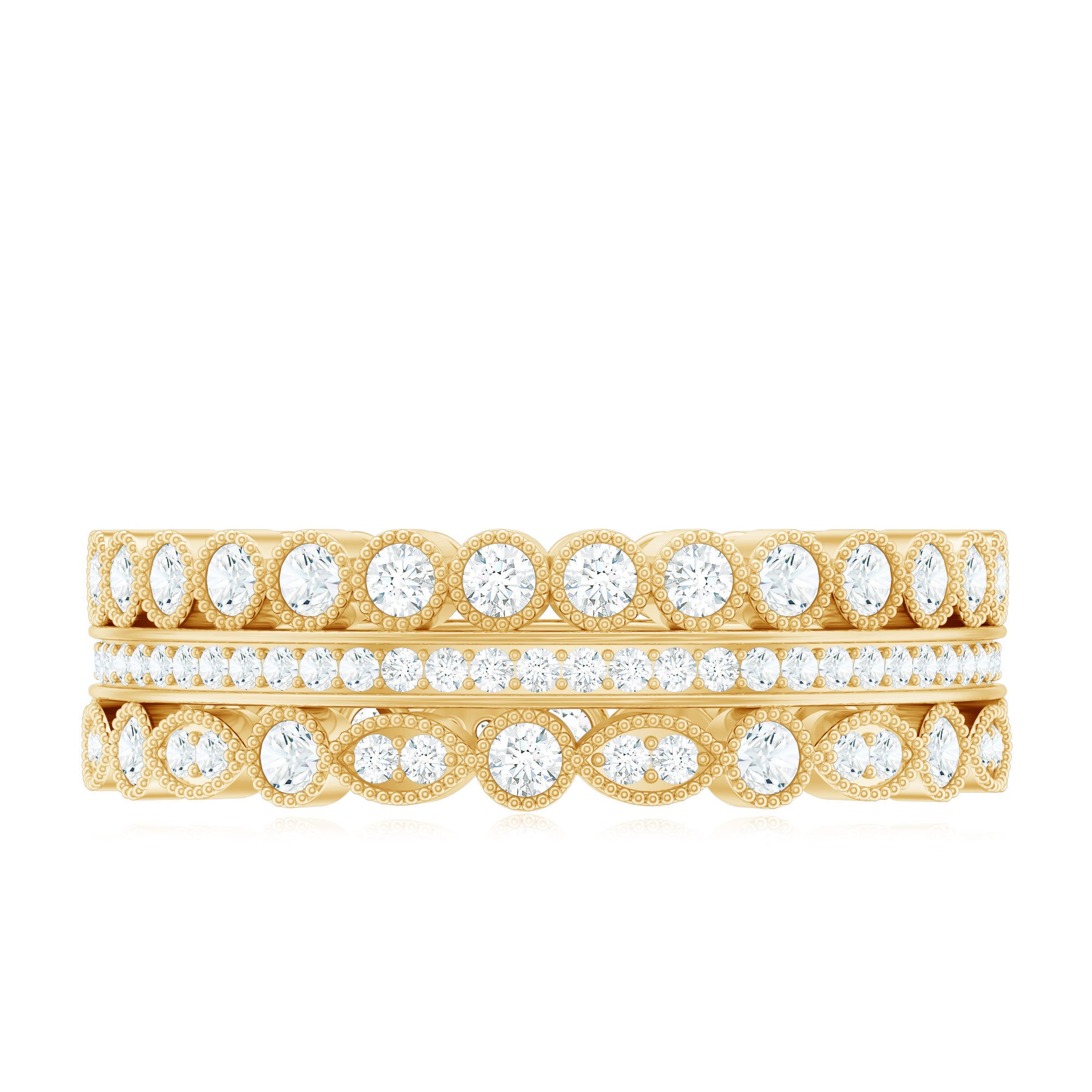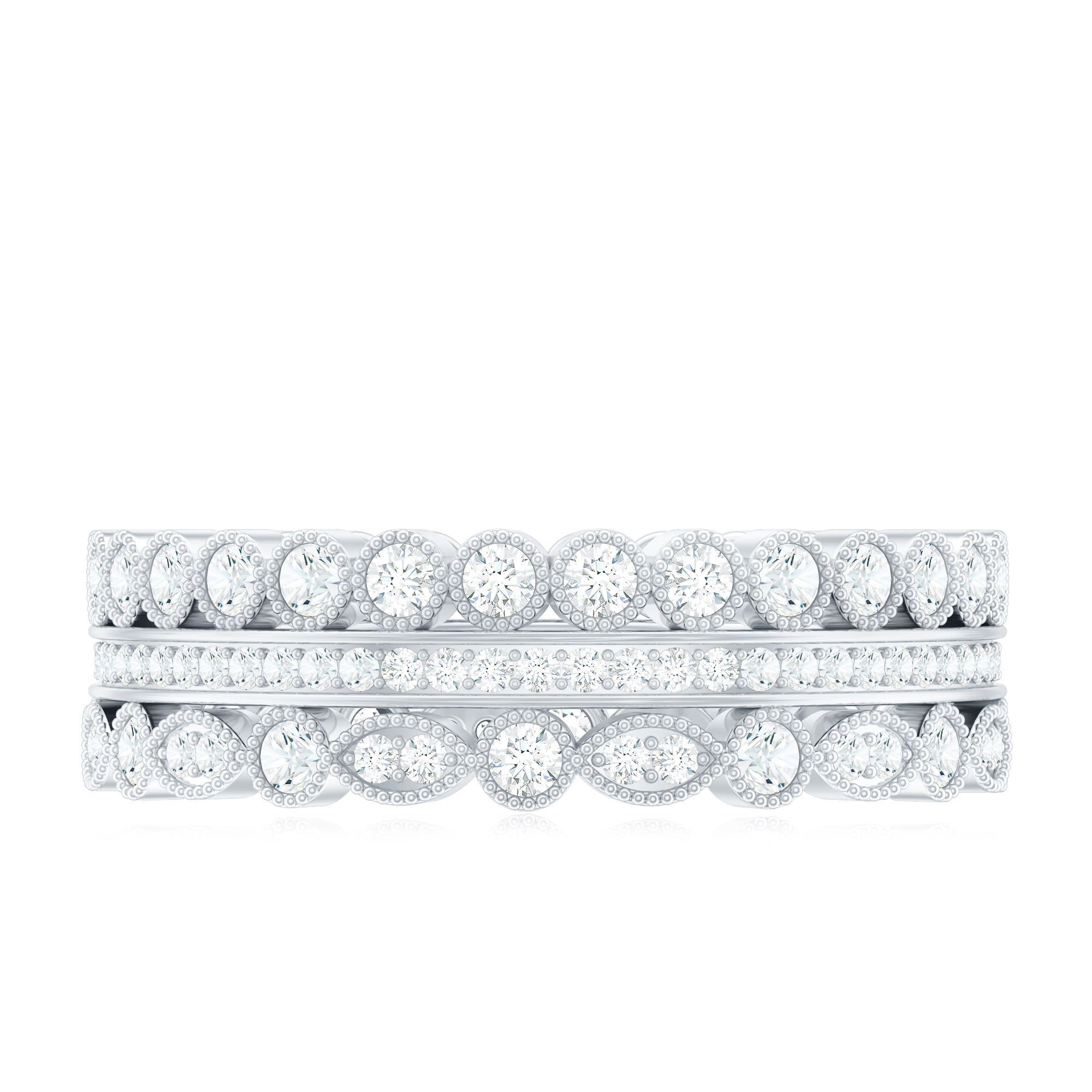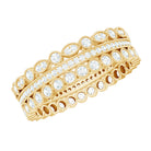 This Three Row Wedding Band is the perfect blend of vintage beauty and modern brilliance. Designed with care and creativity, this Eternity Band features three distinct rows of shimmering moissanite stones, each thoughtfully arranged to bring a different touch of texture and sparkle. The centerpiece of the design is the continuous loop of round cut moissanites, while the other rows highlight beaded bezel set stones and a scalloped design that softly hugs the center row. The intricate beaded detailing is not only beautiful but gives the Vintage Wedding Band a timeless, heirloom-like feel that stands out from modern minimal designs. The combination of these rows creates a stacked look in a single band, a gorgeous, layered aesthetic without the need for multiple rings. Whether worn as a wedding band, anniversary ring, or statement piece, it delivers both elegance and meaning. Crafted to be comfortable for daily wear, it wraps the finger with a perfect balance of sparkle and sophistication. Available in a wide range of sizes, this Moissanite Anniversary Band is a thoughtful gift or personal keepsake that captures the essence of love, memory, and style.