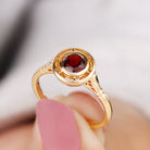 Reminiscent of timeless romance, this Vintage Inspired Engagement Ring is a stunning tribute to your everlasting love. The rich red 4 mm Round Shape Garnet is set in Bezel Setting at the center of the design, radiating warmth and passion, while intricate vintage style detailing around the band adds a sense of history and charm. With its delicate design, this Garnet Engagement Ring brings the beauty of the past into the present, making it the perfect way to express a love that is both enduring and unique. The deep, vibrant red hue of the AAA Quality Garnet is complemented by a simple yet sophisticated band, creating a balance between classic elegance and modern flair. Presented in a signature jewelry box, this Bezel Set Engagement Ring is ready to be gifted to the one you cherish, whether for a proposal or anniversary. Available in a range of US ring sizes, this Garnet Solitaire Ring ensures a perfect fit, symbolizing a love as rare as the stone itself. For those who appreciate beauty that transcends time, this Vintage Garnet Ring is a heartfelt promise of forever.